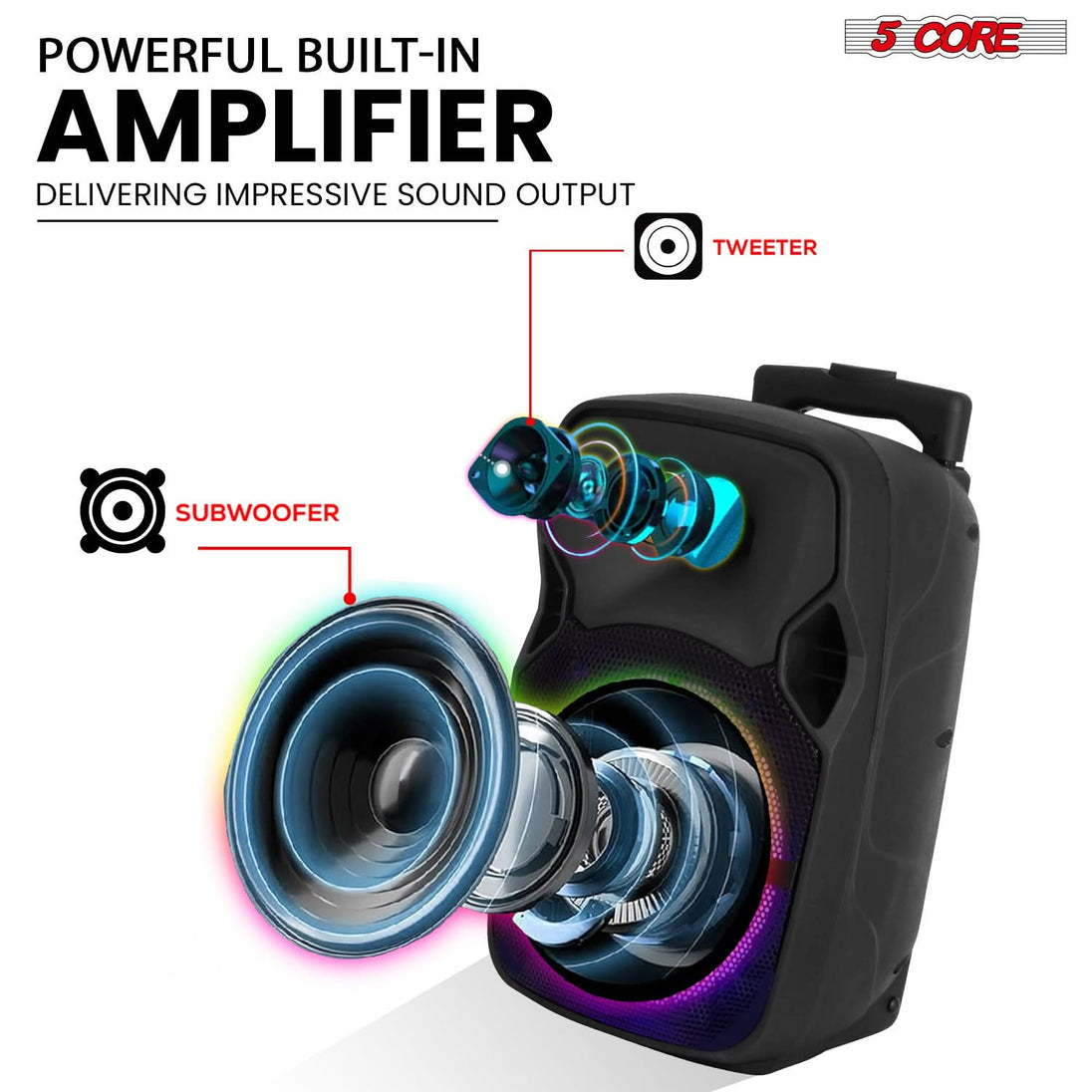 【Portable & Rechargeable】Built for mobility with a trolley handle, long lasting rechargeable battery with even longer play time. A versatile big Bluetooth speaker for DJs, parties, gatherings, and events where portability and performance matter.