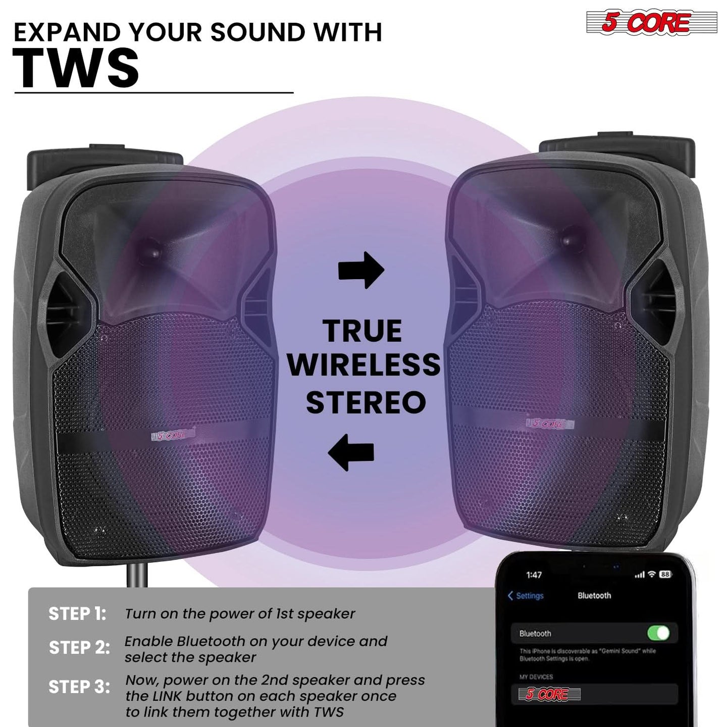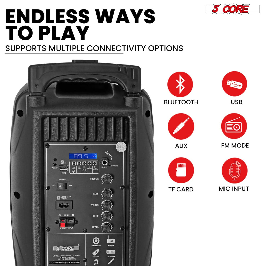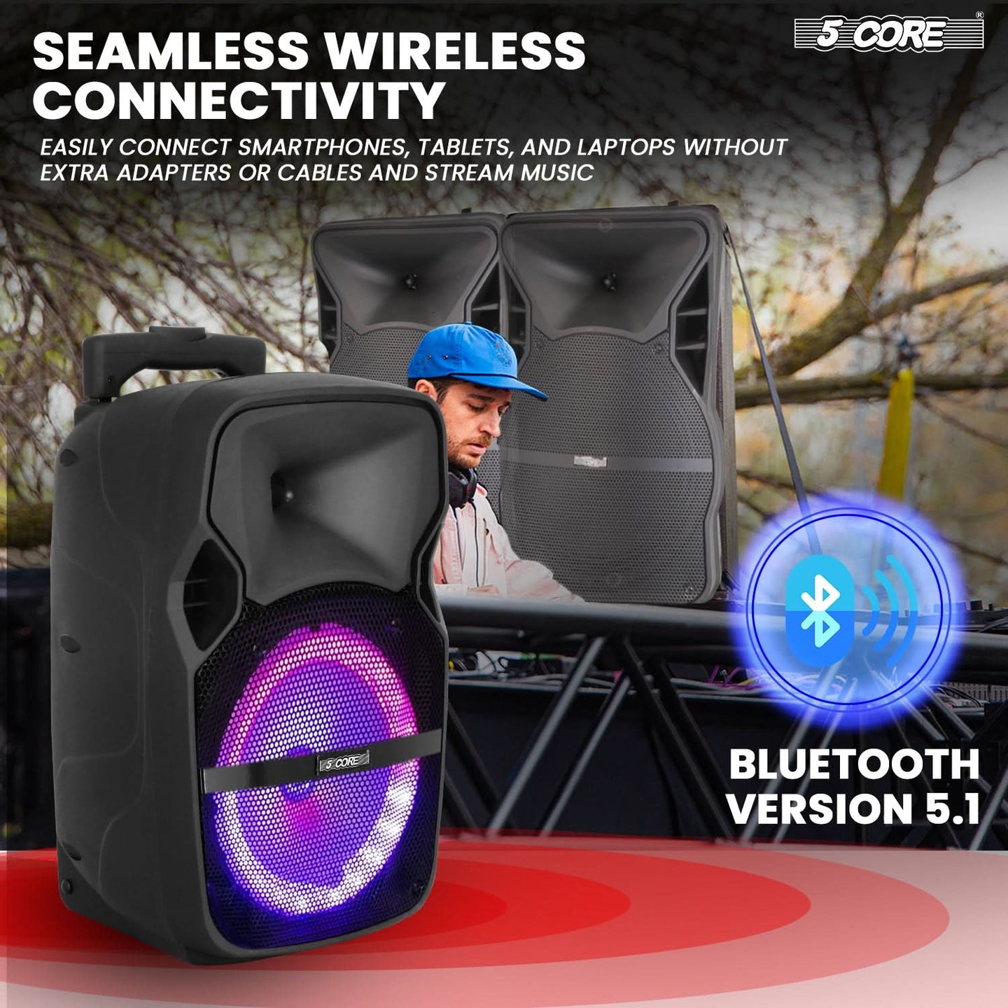 【Bluetooth TWS & Multiple Input】Play music wirelessly via Bluetooth or pair two speakers using TWS for a bigger stereo soundstage. Supports USB, AUX, FM radio, and LED display—making this a versatile bluetooth party speaker and speaker system for any setup.