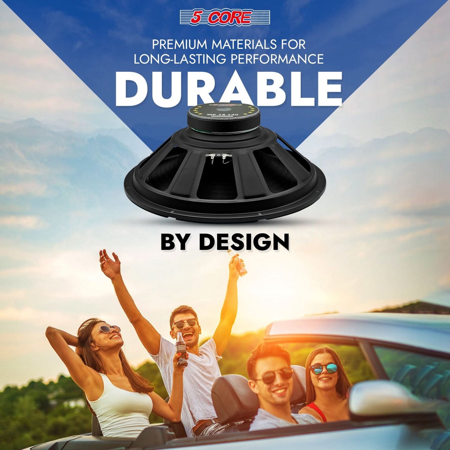 Standard 15 inch size, easy to install in a car door, speaker holes, under seat. Perfect for replacing bad speakers or upgrading from low powered OEM ones. |