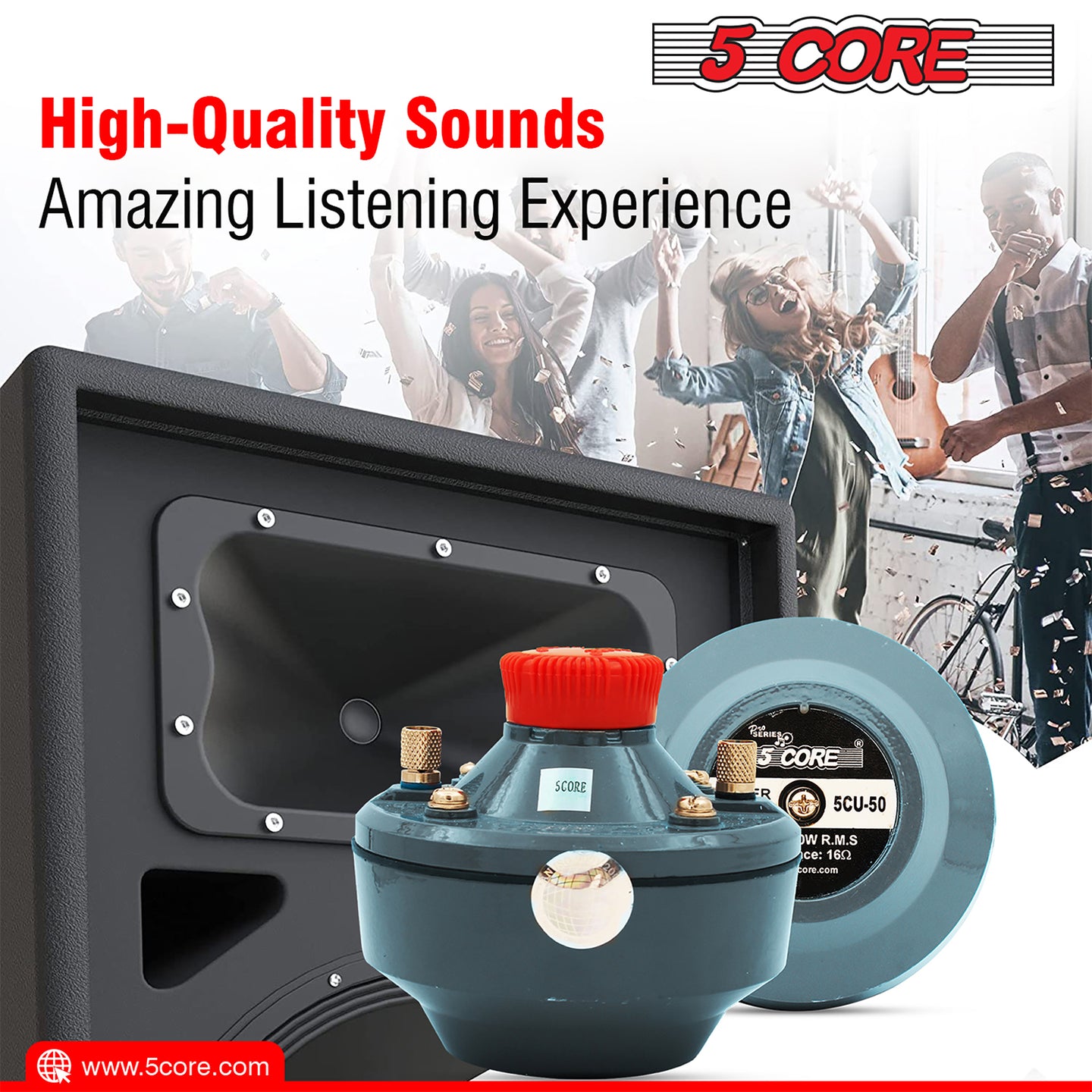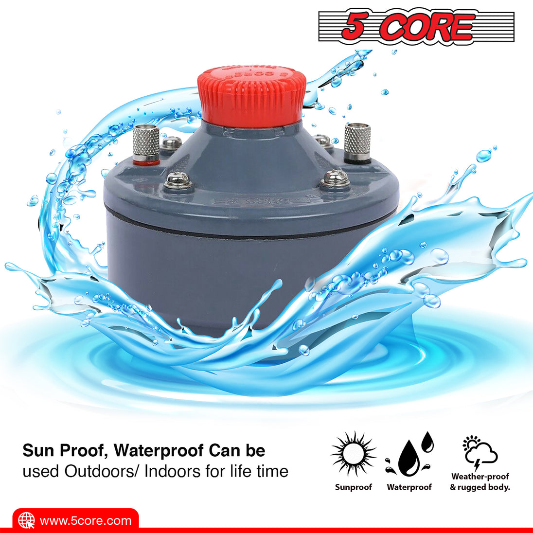 The 5 Core driver unit and trumpet horn are made of durable aluminum to ensure performance in any weather. |