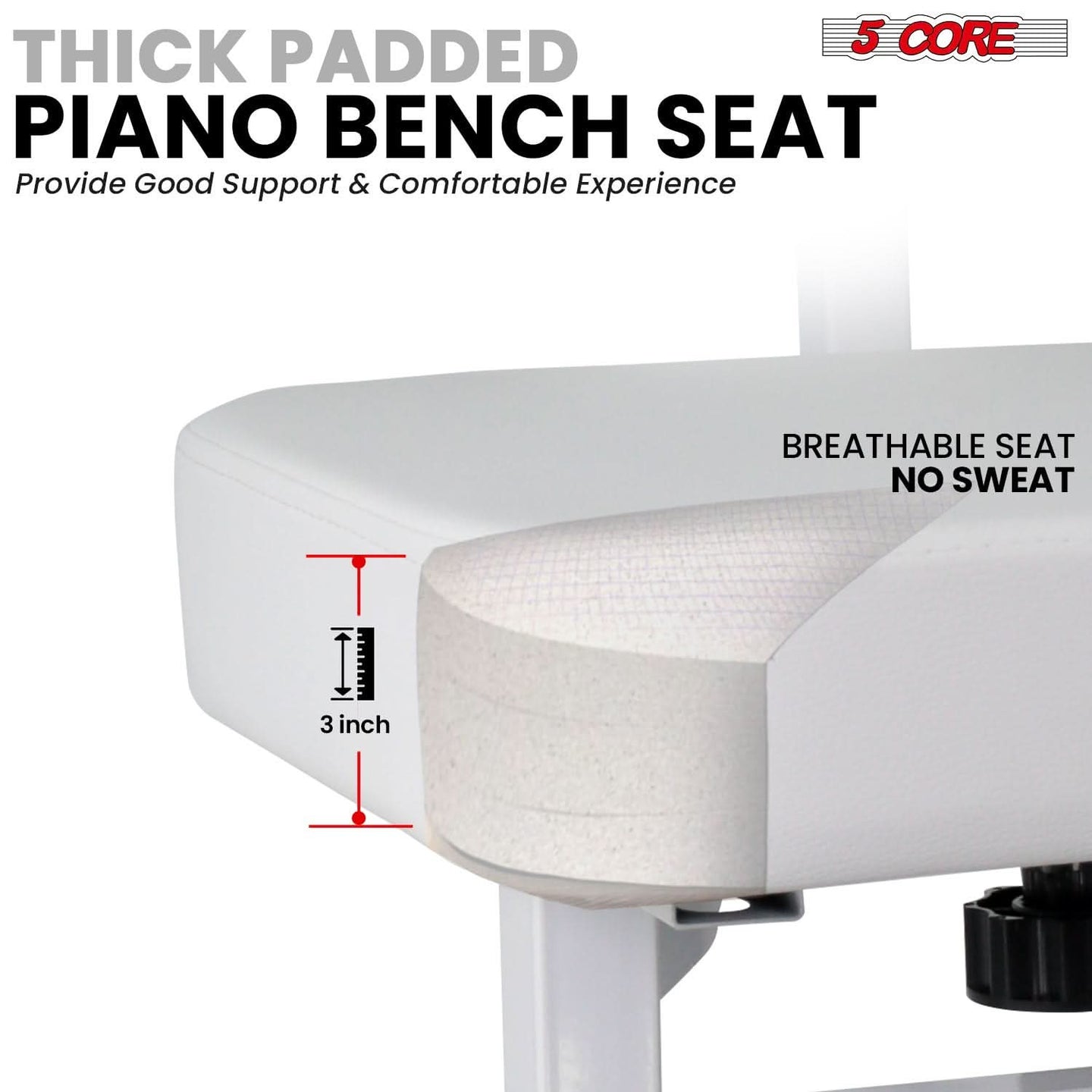 【Thick Padded Piano Bench】- Comfortable 3-inch sponge padding with a breathable seat stays in shape and provides long-lasting comfort.