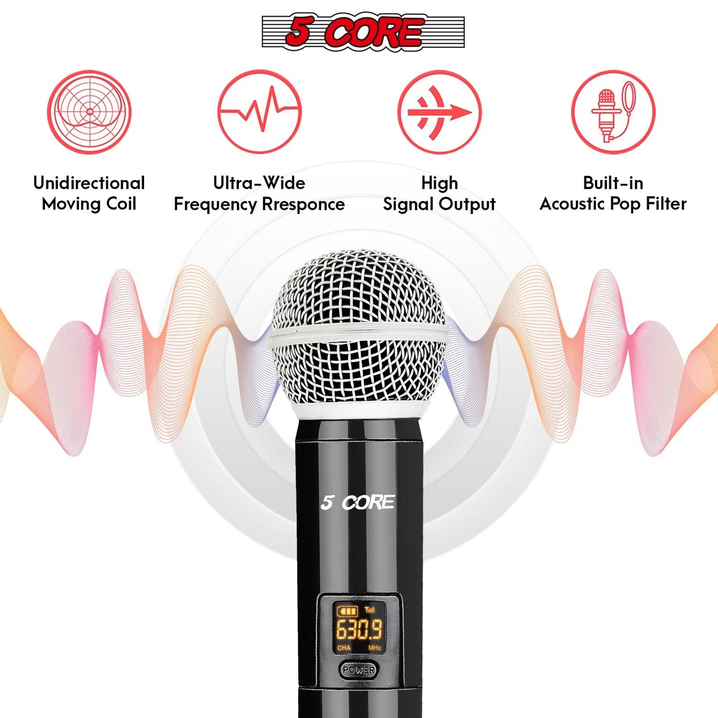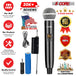 | Experience clear and pristine audio with minimal background noise, thanks to our 105dB high signal-to-noise ratio. | Enjoy a comfortable grip with our ergonomically designed handheld cordless karaoke singing mic | The microfono inalambrico professional connect with the receiver automatically, reducing the overall setup process significantly. | Our cordless mic PA DJ microphone system comes with a standard 6.35mm or 3.5mm mic jack, seamlessly integrating with your existing audio equipment without hassle. |