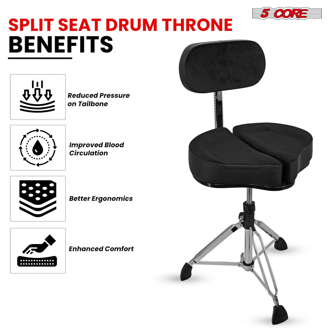 【Split Seat Drum Thone】Provides superior comfort by relieving tailbone pressure, boosting circulation, and promoting better posture to reduce fatigue during long sessions.