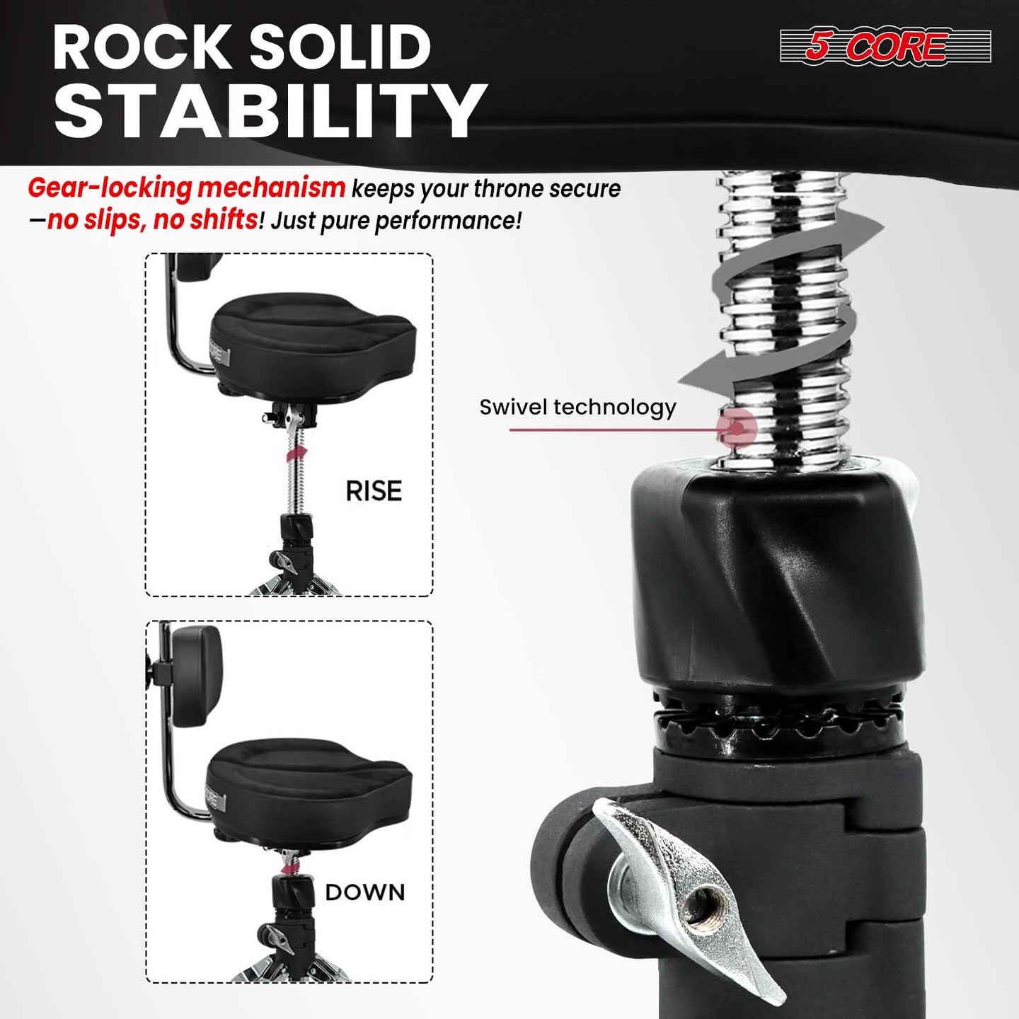 【Thick Padded Drum Throne 】Upgraded 5" high-density sponge seat, covered in luxurious velvet. Designed for lasting comfort during long sessions.