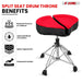 Experience amazing comfort with our thick padded drum throne, featuring a 4 inch high-density soft sponge seat. The swivel height adjustable mechanism lets you rotate the seat 360 degrees. The four double braced metal legs feature large anti-slip rubber caps, providing superior stability and floor protection from scratches and damage. Easy to install; just unfold, insert the seat, and secure it with knob screws. This music stools' portable, foldable design makes it perfect for gigs and rehearsals. With a sleek, modern look, this versatile drum throne doubles as a guitar stool, DJ chair, and more. |