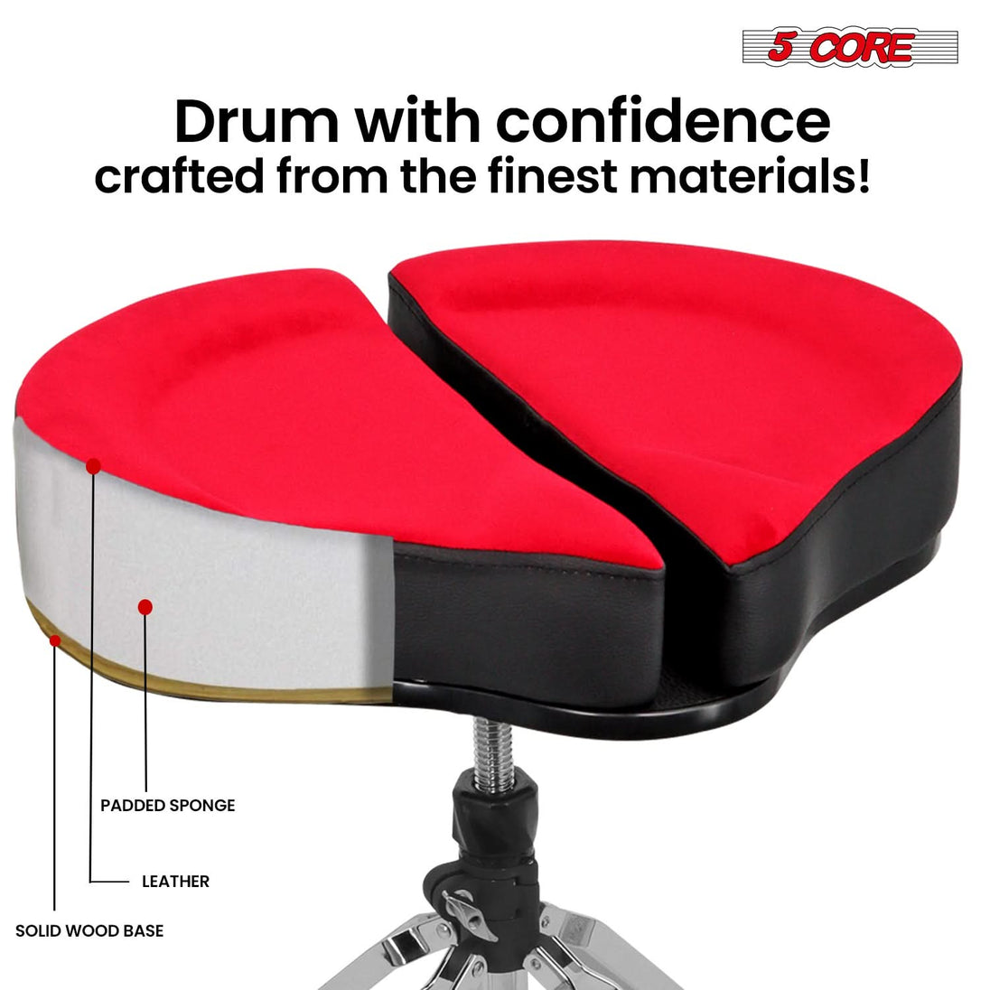 【Thick Padded Drum Throne】4" high-density sponge with ergonomic saddle-style seat, covered in luxurious velvet for lasting comfort.