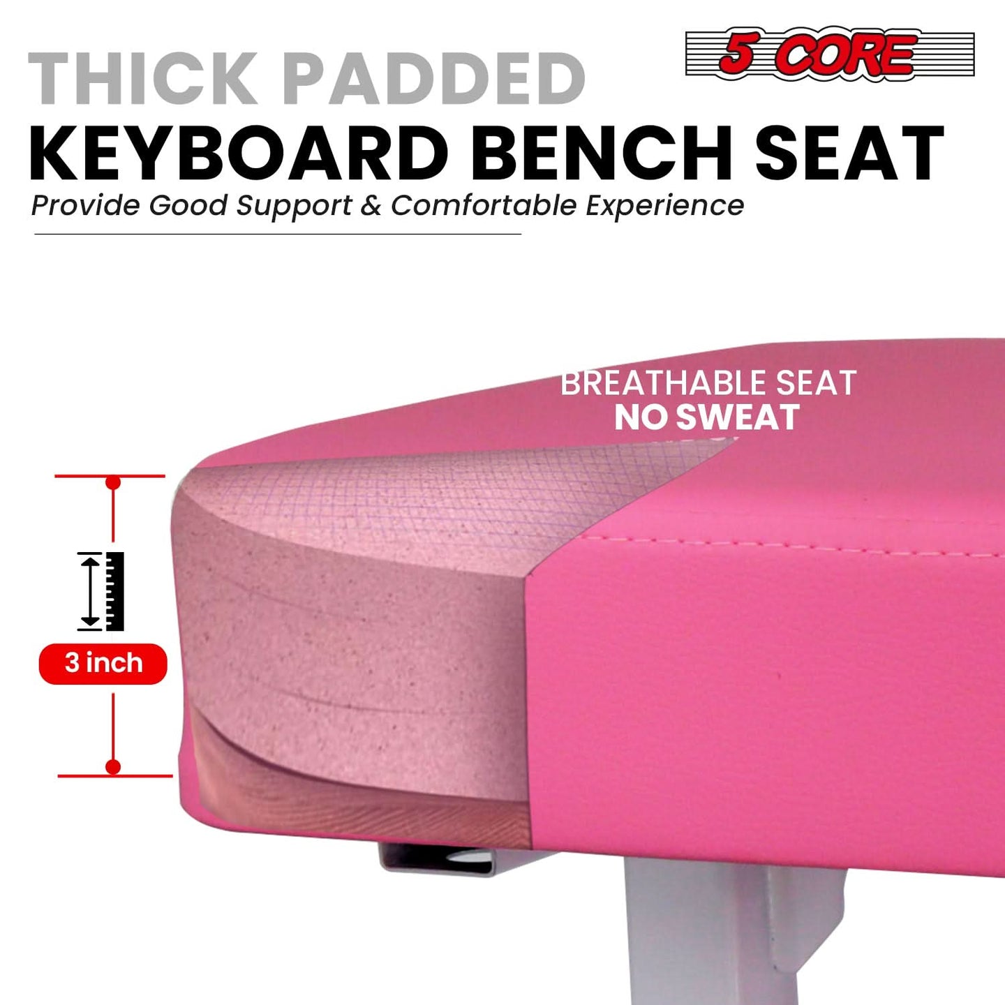 【Thick Padded Keyboard Bench】 Comfortable 3-inch sponge padding with a breathable seat. Stays in shape and provides long-lasting comfort even after extended use.
