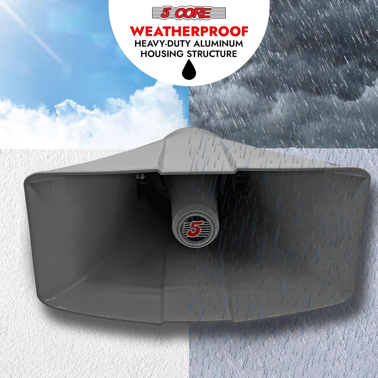 【All-Weather Loudspeaker】 Heavy-duty ABS construction withstands harsh climates, making it perfect for outdoor use.