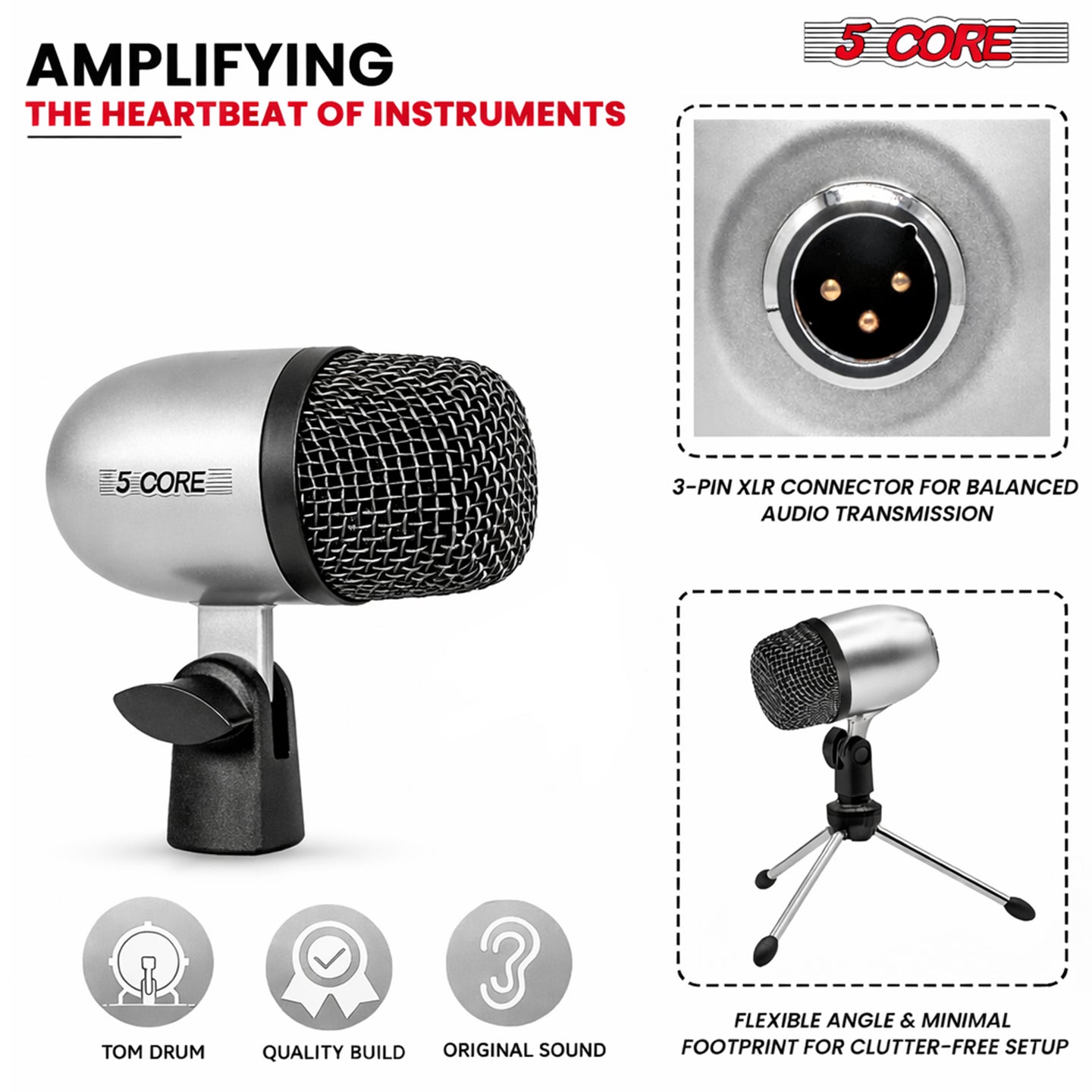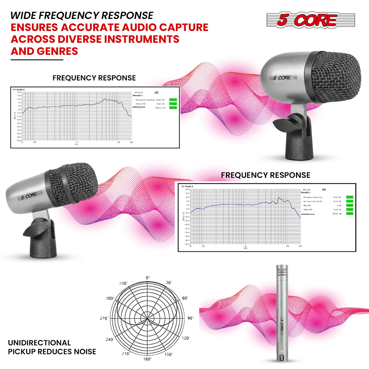 Hypercardioid Isolation - Each snare and tom drum mic set is engineered with hypercardioid directional characteristics to isolate your drums and reduce unwanted cymbal wash or background noise. Ideal for live drum recording kit setups where clarity and separation matter most.