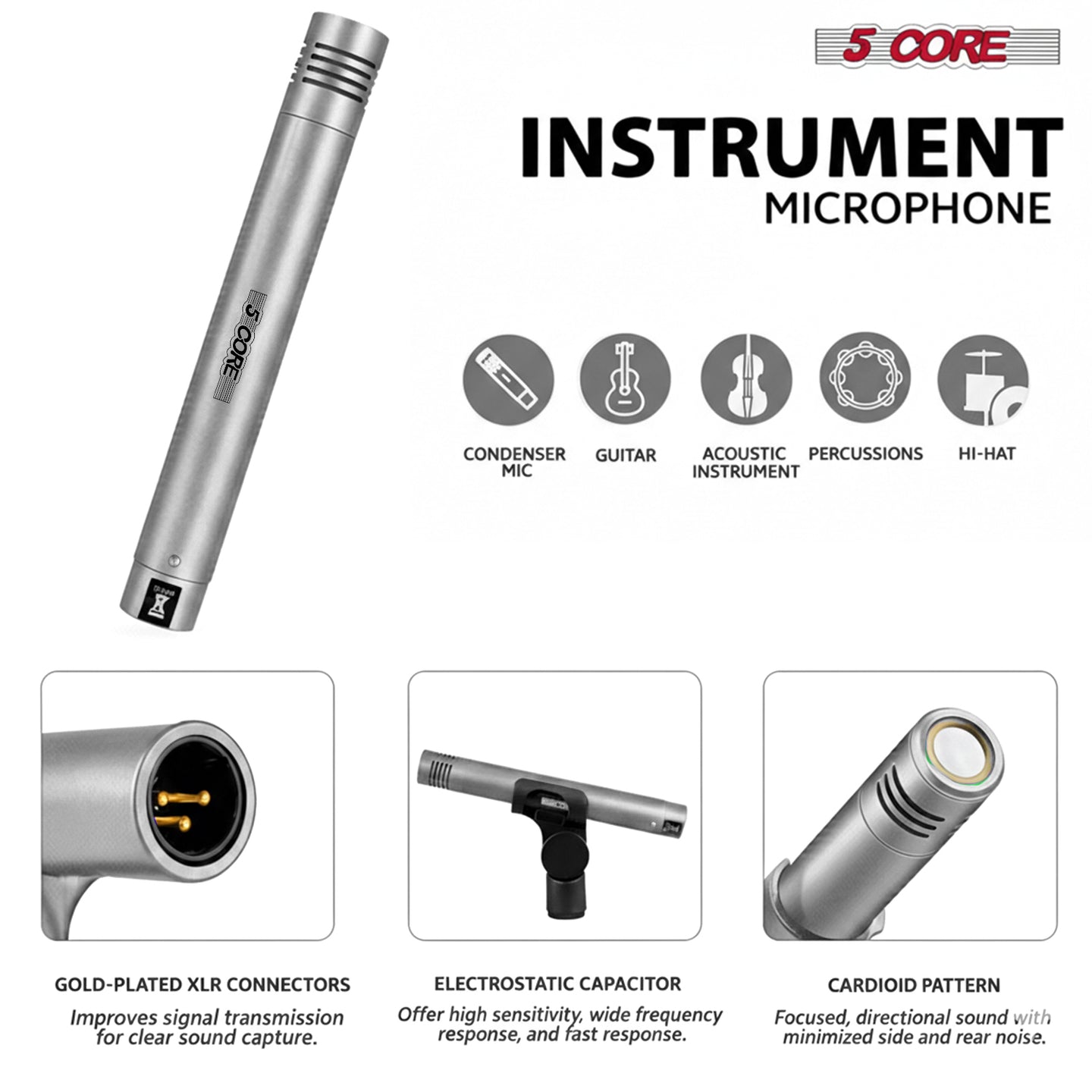 Condenser Overheads Mics - The back electret condenser microphones (50Hz–18kHz) deliver bright highs and natural tone reproduction. With 130dB max SPL handling and 48V phantom power compatibility, this drum microphone set captures cymbal shimmer and overhead detail without harshness or clipping.