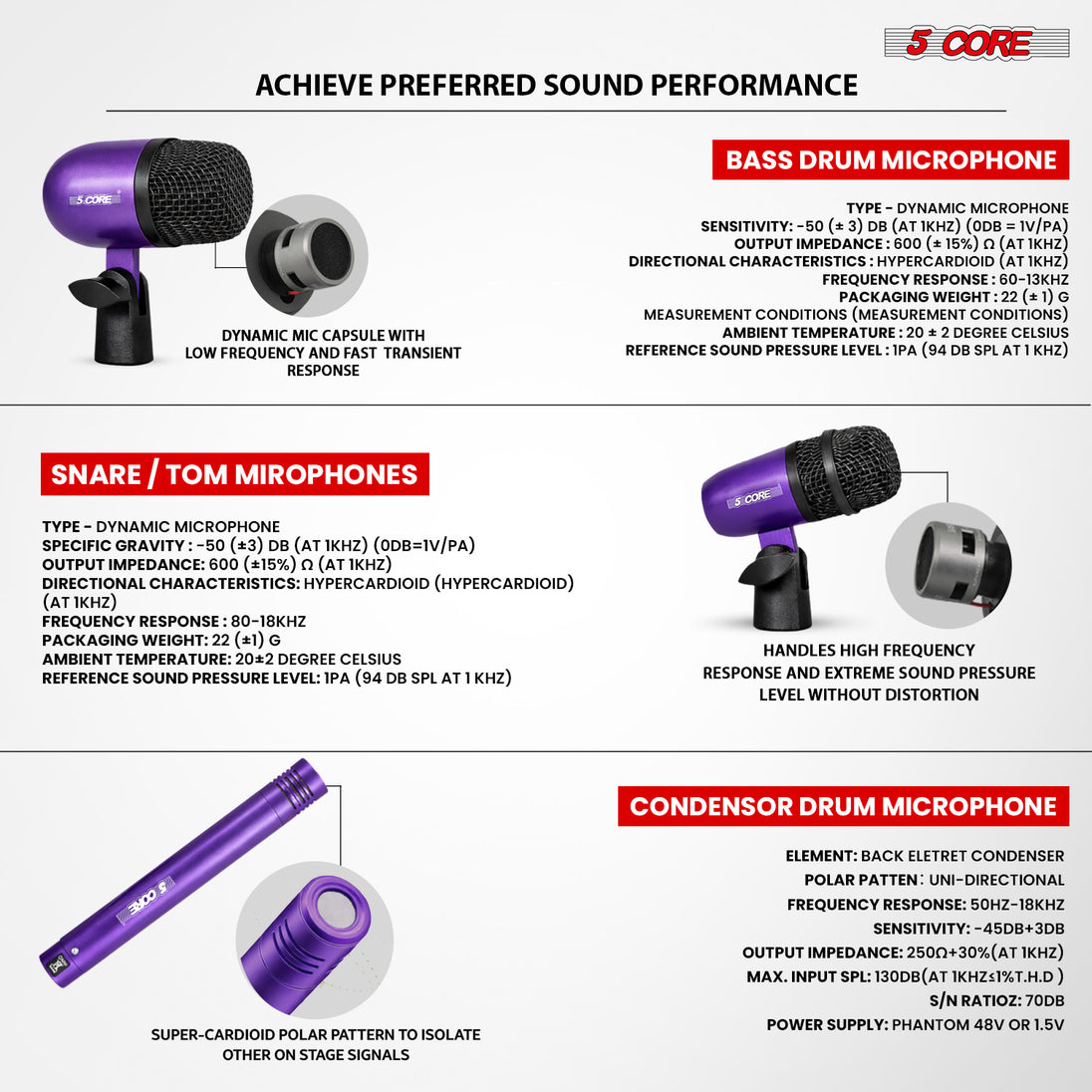 SNARE / TOM MIROPHONES SPECIFICATIONS-