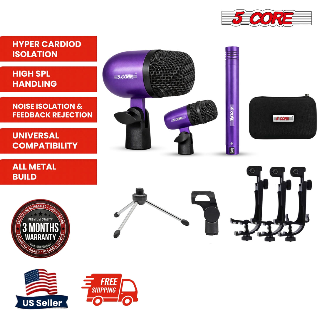 【Hypercardioid Isolation】Each snare and tom drum mic set is engineered with hypercardioid directional characteristics to isolate your drums and reduce unwanted cymbal wash or background noise. Ideal for live drum recording kit setups where clarity and separation matter most.