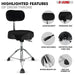 Upgrade your drumming experience with the 5 Core Air-Adjustable Velvet Saddle Drum Throne. Featuring a 4-inch high-density foam cushion with a soft velvet cover, this ergonomic saddle seat ensures maximum comfort for long practice or performance sessions. The air-lift height adjustment (19"–25") allows precise, effortless customization, while the double-braced steel legs and non-slip rubber feet provide rock-solid stability, supporting up to 441 lbs. Ideal for drummers, guitarists, and keyboardists, its sleek design and premium finish add style to any setup. Lightweight, durable, and versatile, this drum throne delivers unmatched comfort, stability, and professional appeal for musicians of all levels. |