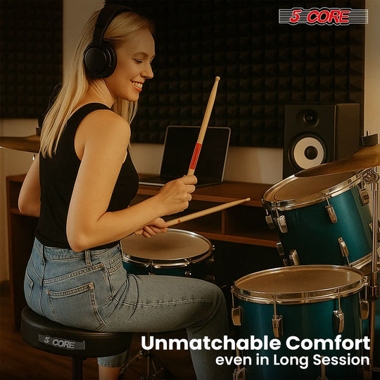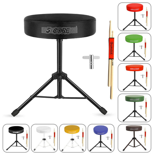 5 Core Drum Throne 3" Thick Padded Memory Foam Comfortable Drummer Stool 330Lb Capacity Adjustable