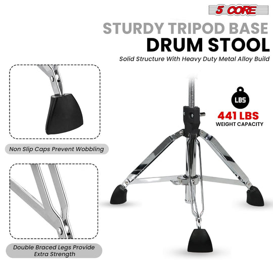 5 Core Drum Throne w Backrest 4" Padded Adjustable 26.5" Drummer Stool w Velvet Top 441Lb Capacity