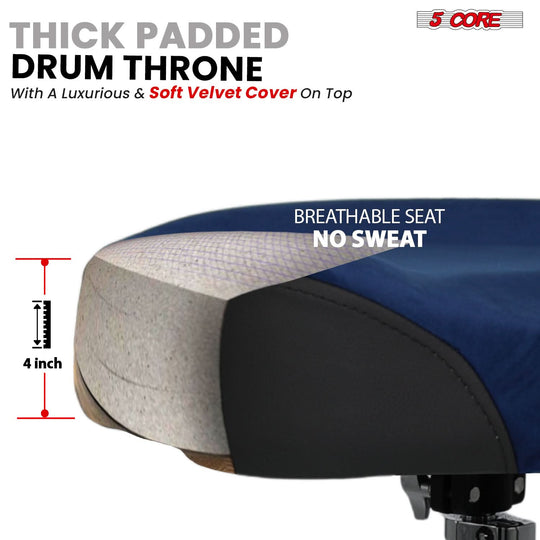 5 Core Drum Throne w Backrest 4" Padded Adjustable 26.5" Drummer Chair w Velvet Top 441Lb Capacity