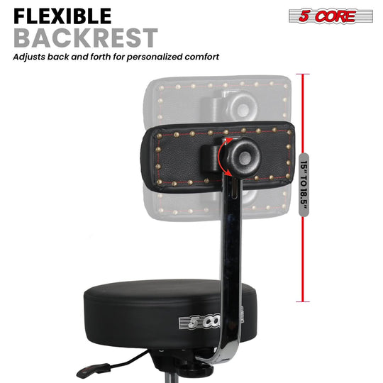 5 Core Drum Throne w Backrest 4" Padded Stool Airlift Adjustable 25.5" Drummer Chair 441Lb Capacity