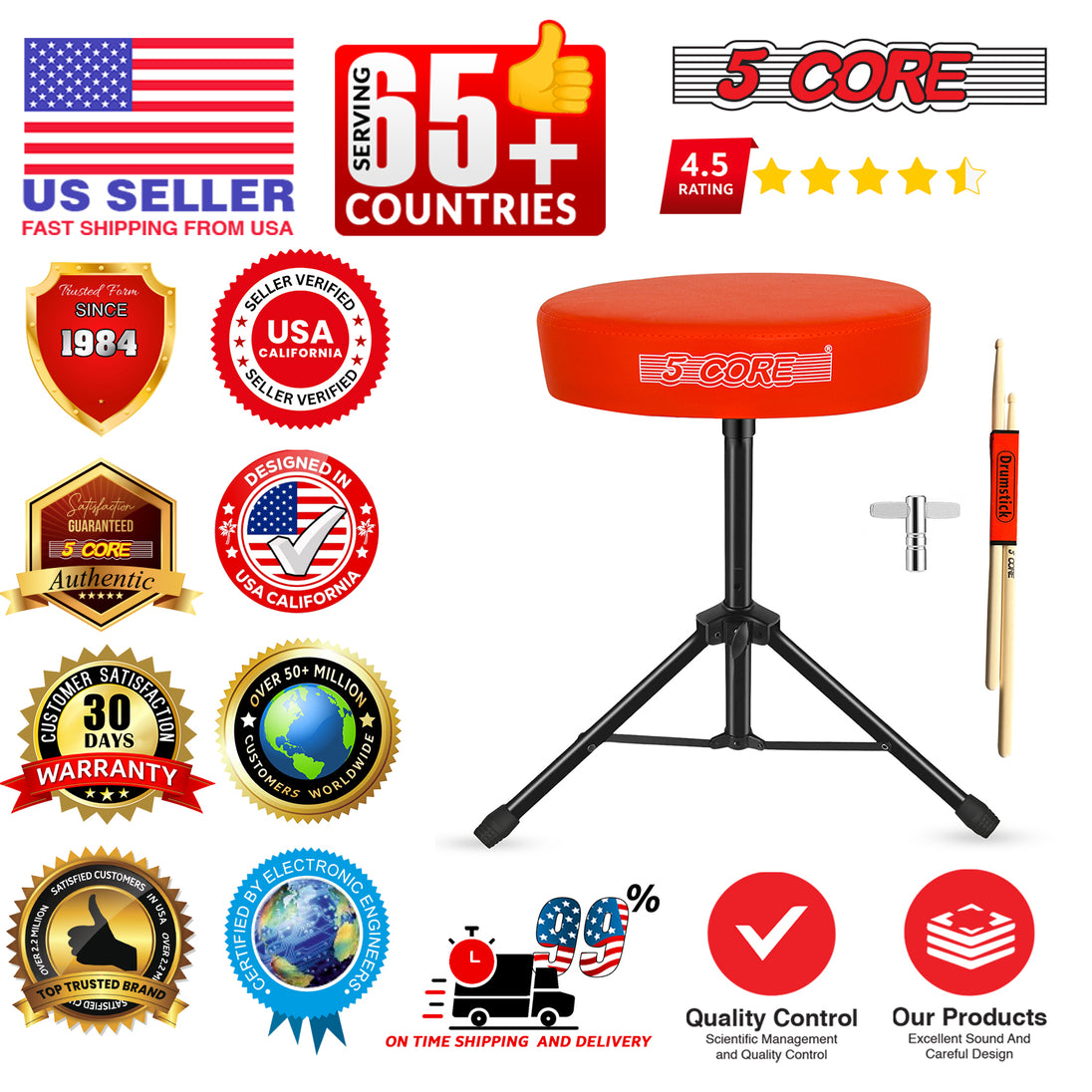 Experience unmatched performance with the 5 Core drum throne. Its 3 inch thick, 12 inch wide padded seat provides lasting comfort for long drumming sessions. This adjustable drum throne seat ranges from 20.5 to 22 inch, ensuring perfect playing position. The professional drum throne supports up to 330 lbs, making it ideal for both adults and kids.