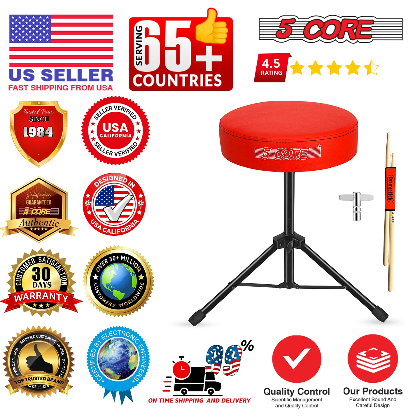 Experience unmatched performance with the 5 Core drum throne. Its 3 inch thick, 12 inch wide padded seat provides lasting comfort for long drumming sessions. This adjustable drum throne seat ranges from 20.5 to 22 inch, ensuring perfect playing position. The professional drum throne supports up to 330 lbs, making it ideal for both adults and kids.