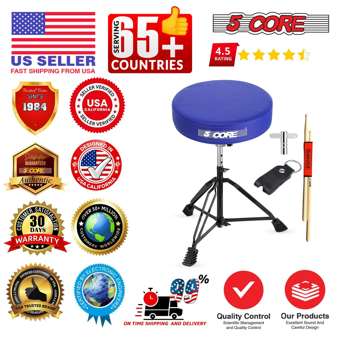 The robust cross structure and sturdy 25.22mm middle tube provide stability, holding up to impressive 200 lbs. Upgrade your music stool to our drummer chair and feel the difference. Perfect for any musician chair setup, our drummer's throne delivers unmatched quality and comfort. Get the drum stool for adults and kids includes two drum sticks.
