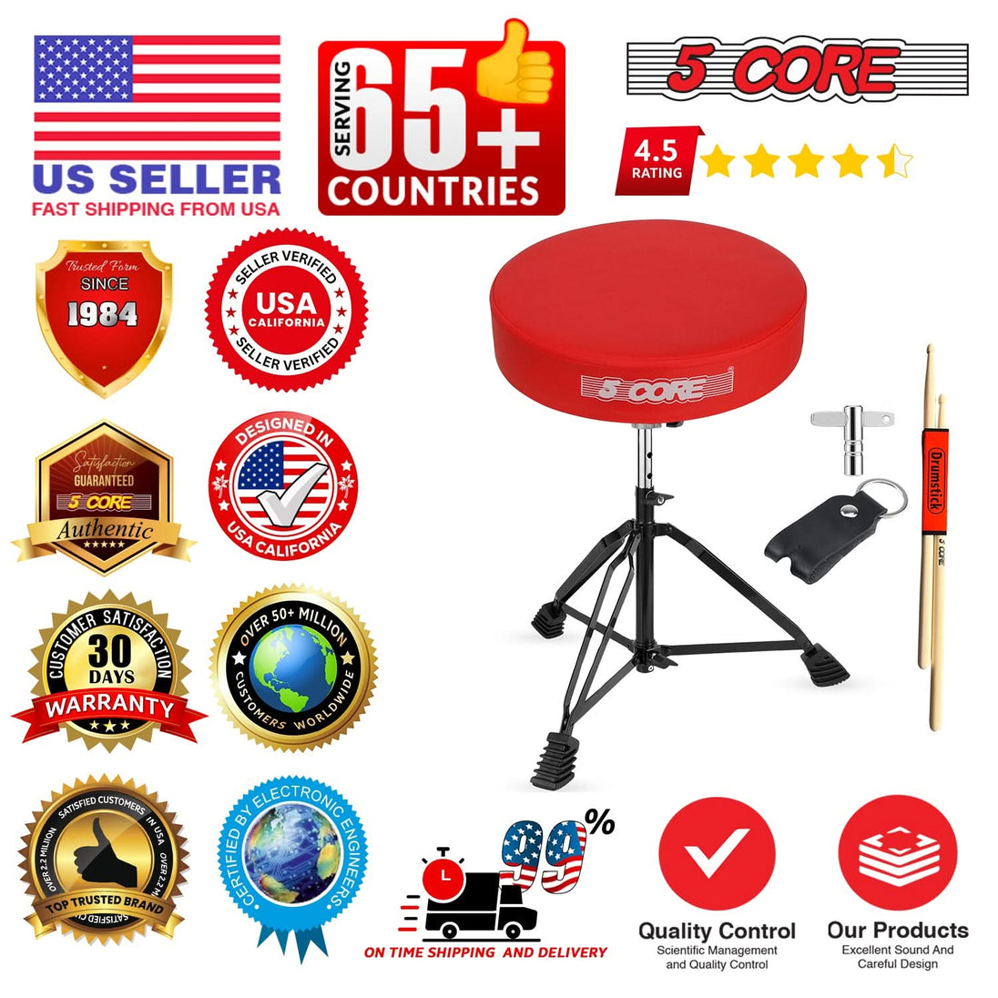 The robust cross structure and sturdy 25.22mm middle tube provide stability, holding up to impressive 200 lbs. Upgrade your music stool to our drummer chair and feel the difference. Perfect for any musician chair setup, our drummer's throne delivers unmatched quality and comfort. Get the drum stool for adults and kids includes two drum sticks.