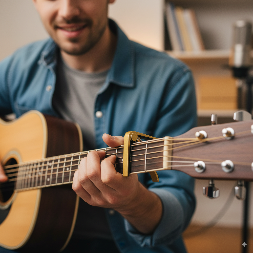 Precision design guitar capo for acoustic electric guitars, ensures your guitar stays in tune even when the capo is applied.