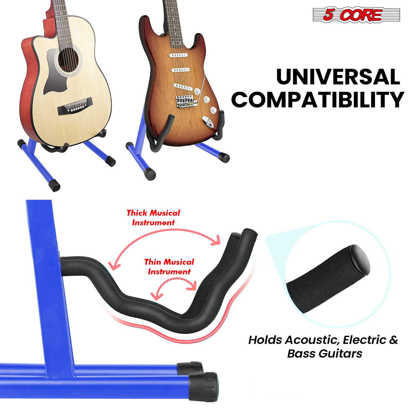 【Universal Compatibility】With a 12-inch max leg width and 8-inch arm length, this foldable stand fits various instruments such as acoustic guitars, electric guitars, basses, ukuleles, and banjos.