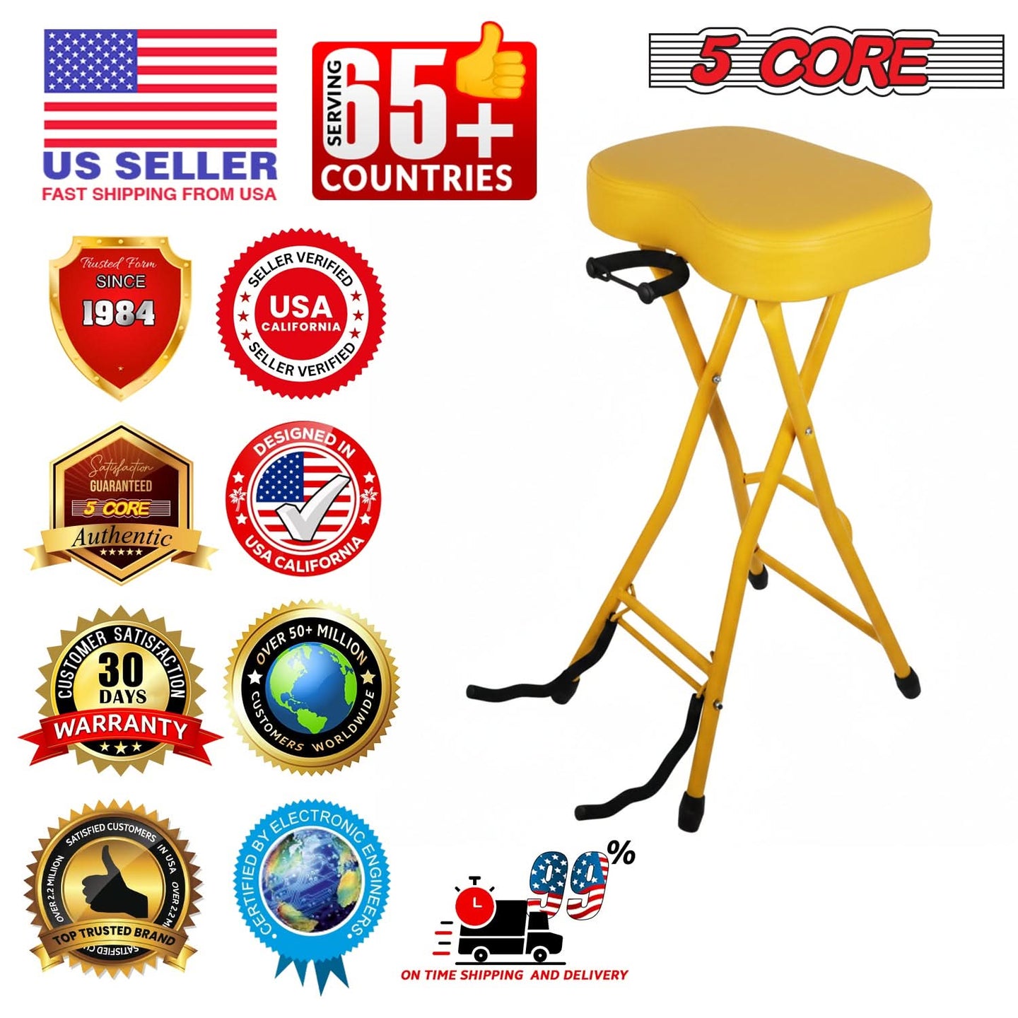 This guitar stool is built with a strong iron frame and a thick 3.15 inch padded seat for steady comfort during long playing sessions. The 29 inch height, 12 inch seat size, and built-in foot rest give you a balanced and natural playing position. A secure guitar neck rest holds acoustic, electric, or bass guitars when you take a break, making it a practical 2-in-1 guitar chair and stand. Non slip caps keep the stool stable on different floors, and the folding design makes storage simple. Ideal for guitarists who want a dependable guitar seat for home, studio, or stage use. |