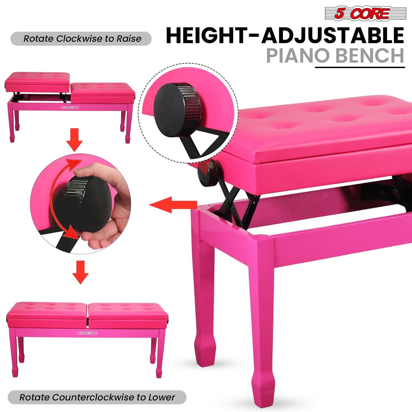 【Height Adjustable Piano Seat】Easily adjust the height from 19" to 23" using the side knob, making it suitable for both adults and kids.
