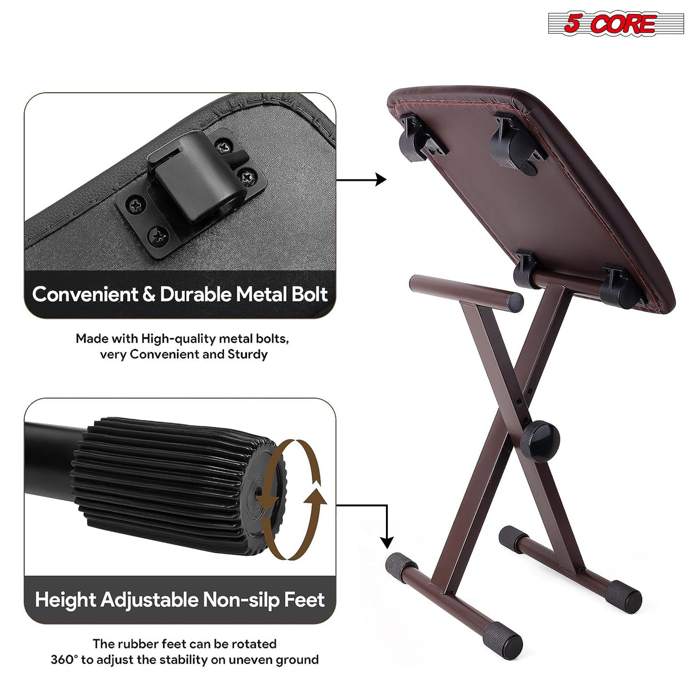 Built with thick 2.5CM iron tubing on the adjustable keyboard stand and 1.6-inch reinforced bench legs, this keyboard stand and bench combo delivers stronger structural integrity than lightweight alternatives. No thin metal, no misalignment issues — just solid performance.