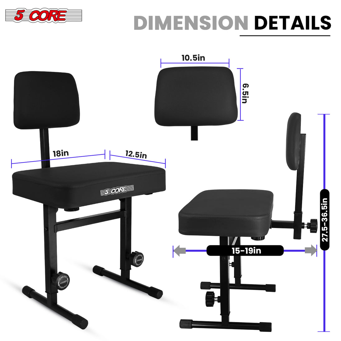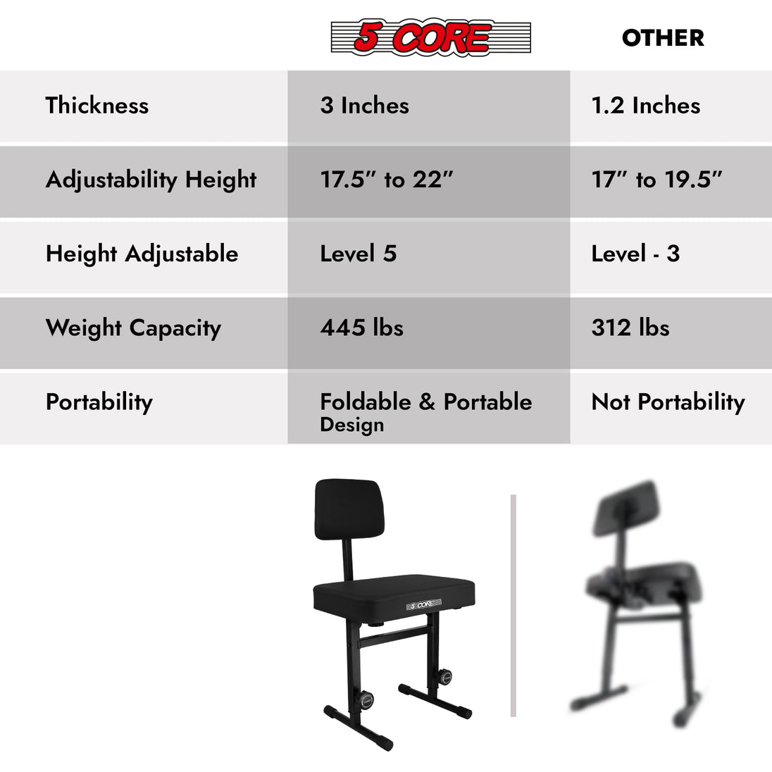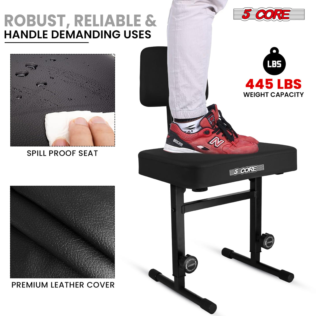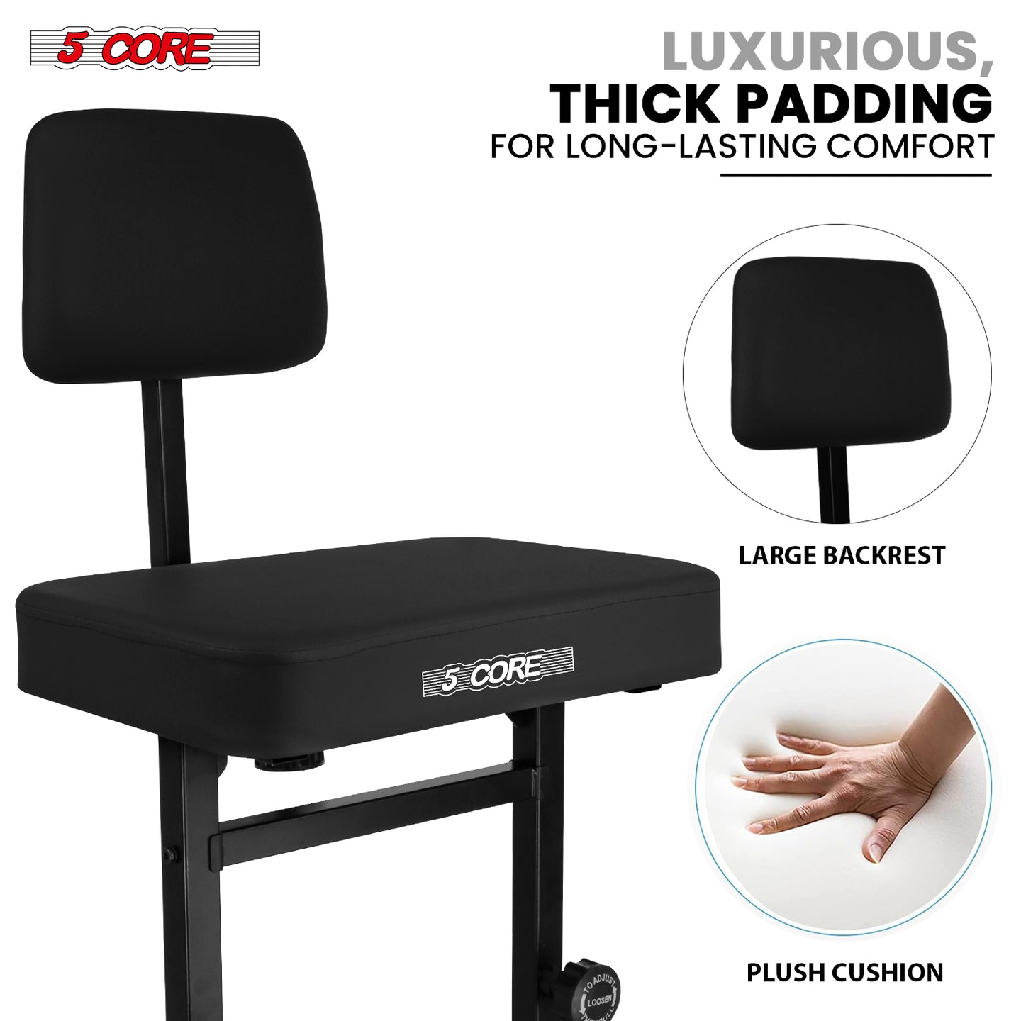 【Heavy-Duty Music Chair】Tough Metal alloy frame with reinforced welds offers durability and can supports up to 445 lbs.