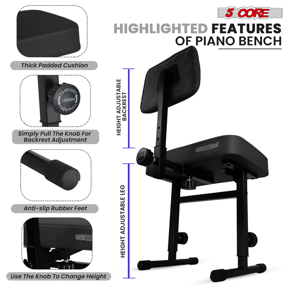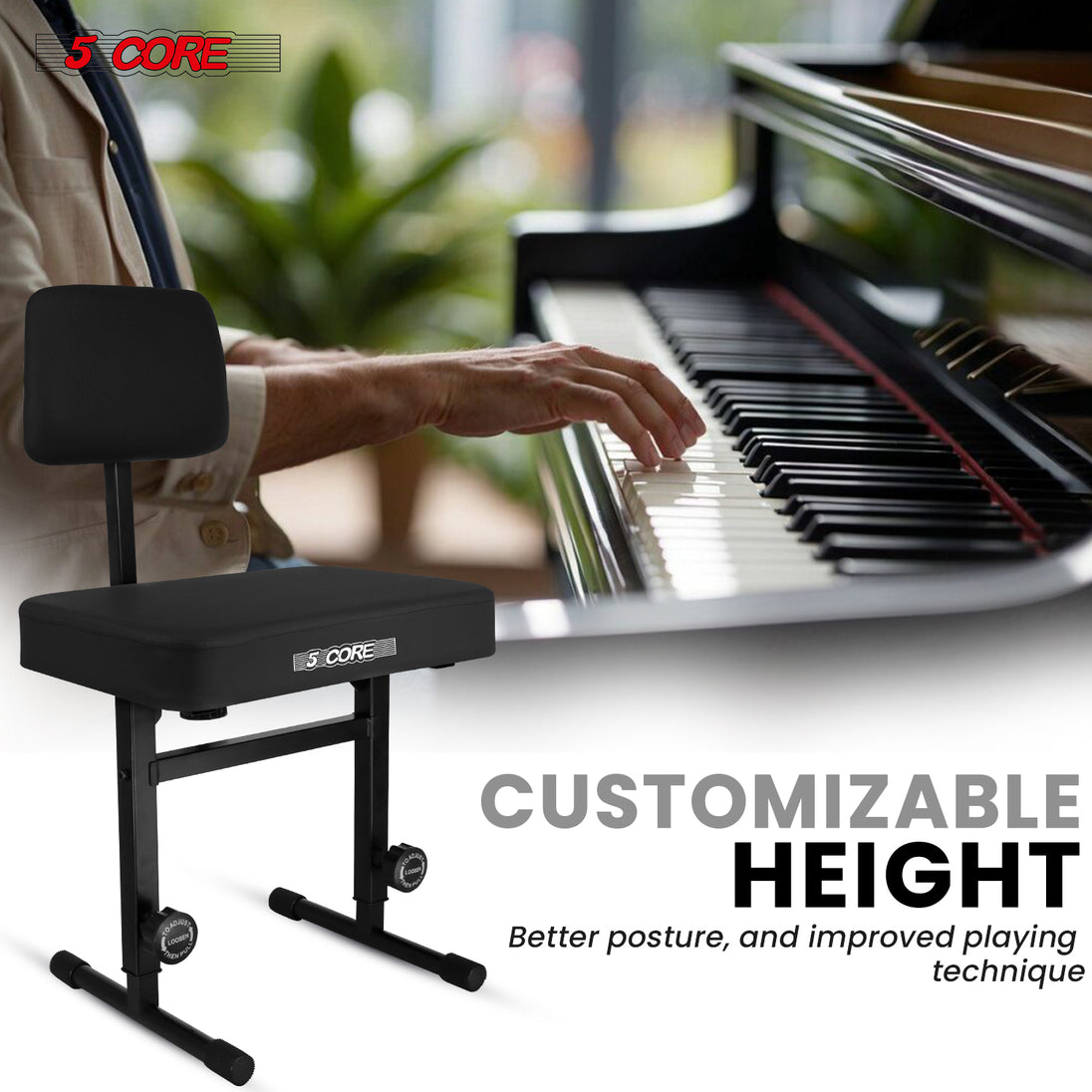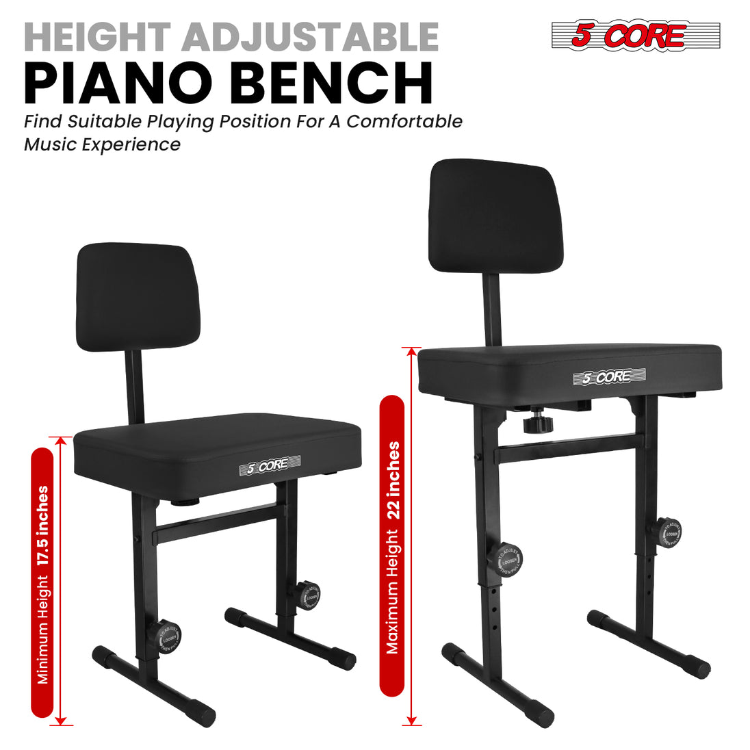 【Height Adjustable Keyboard Bench】Change from 17.5 to 22 inches. Can be used by adults and kids.