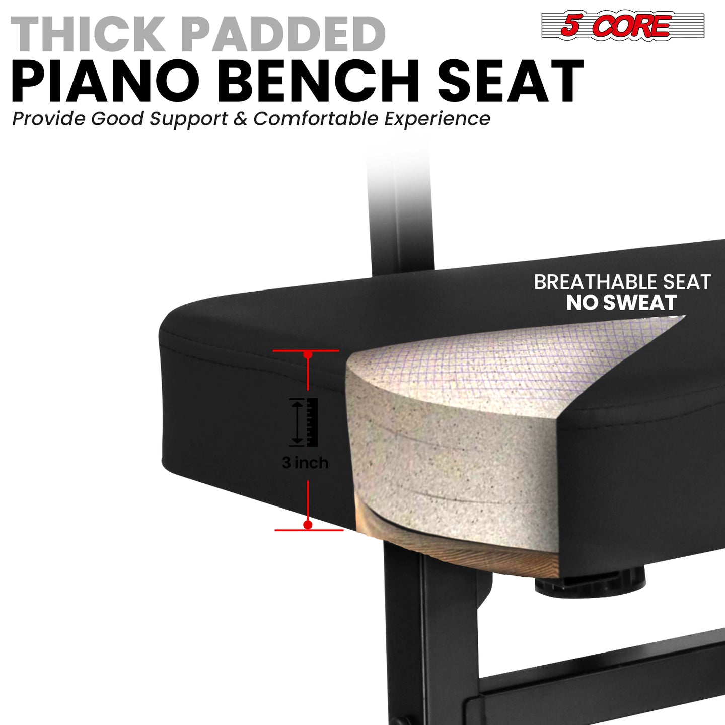 【Thick Padded Piano Bench】Comfortable 3-inch sponge padding with a breathable seat stays in shape and provides long-lasting comfort.