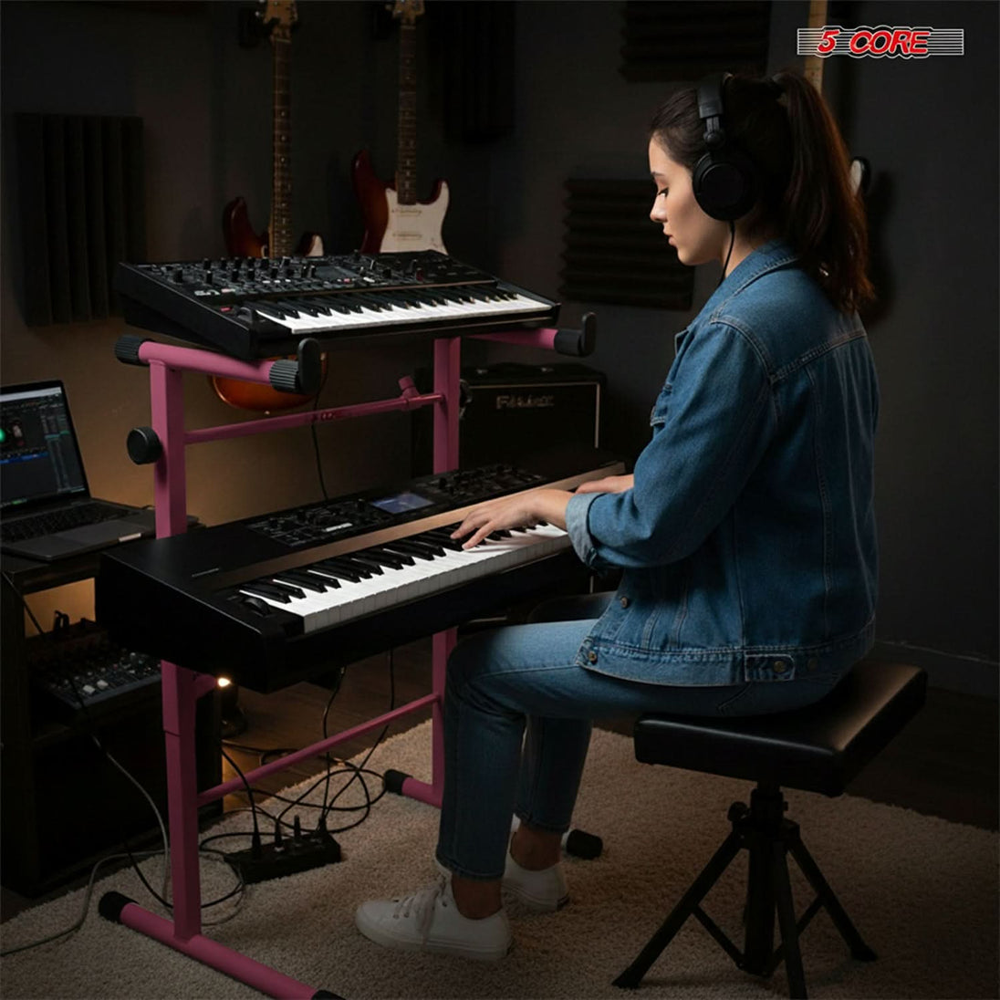 Imagine effortlessly accessing multiple keyboards, electric pianos, MIDI controllers, and more while keeping your workspace organized, clean and compact. With 5 Core's 2-tier keyboard stand, it's not just a dream- it's a reality. With its ergonomic design and adjustable title angle, you can position your instruments comfortably and securely. At 5 Core, Customer satisfaction is our priority—a proven track record of delivering the highest quality product since 1984. |