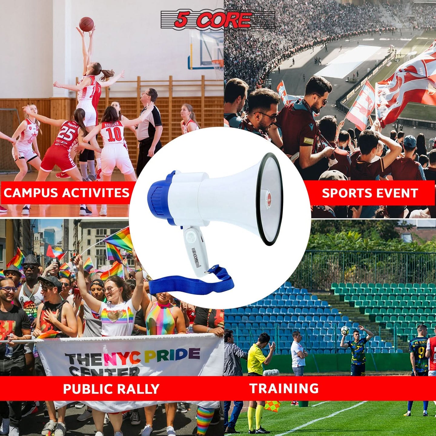 【Siren Mode for Instant Attention】– Activate the alarm mode with a simple push of a button. Perfect for drawing attention quickly in emergencies or energizing the crowd at football games and cheerleading events.