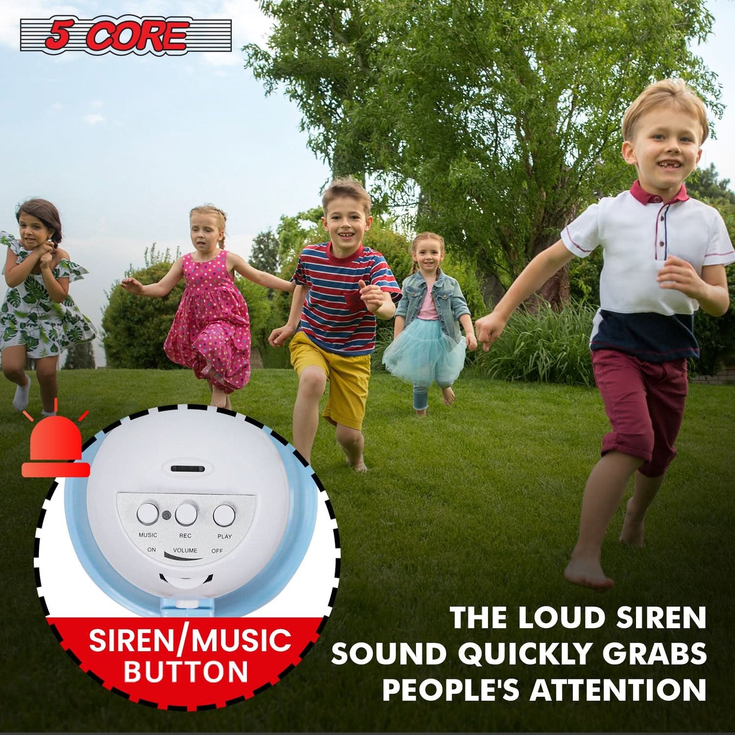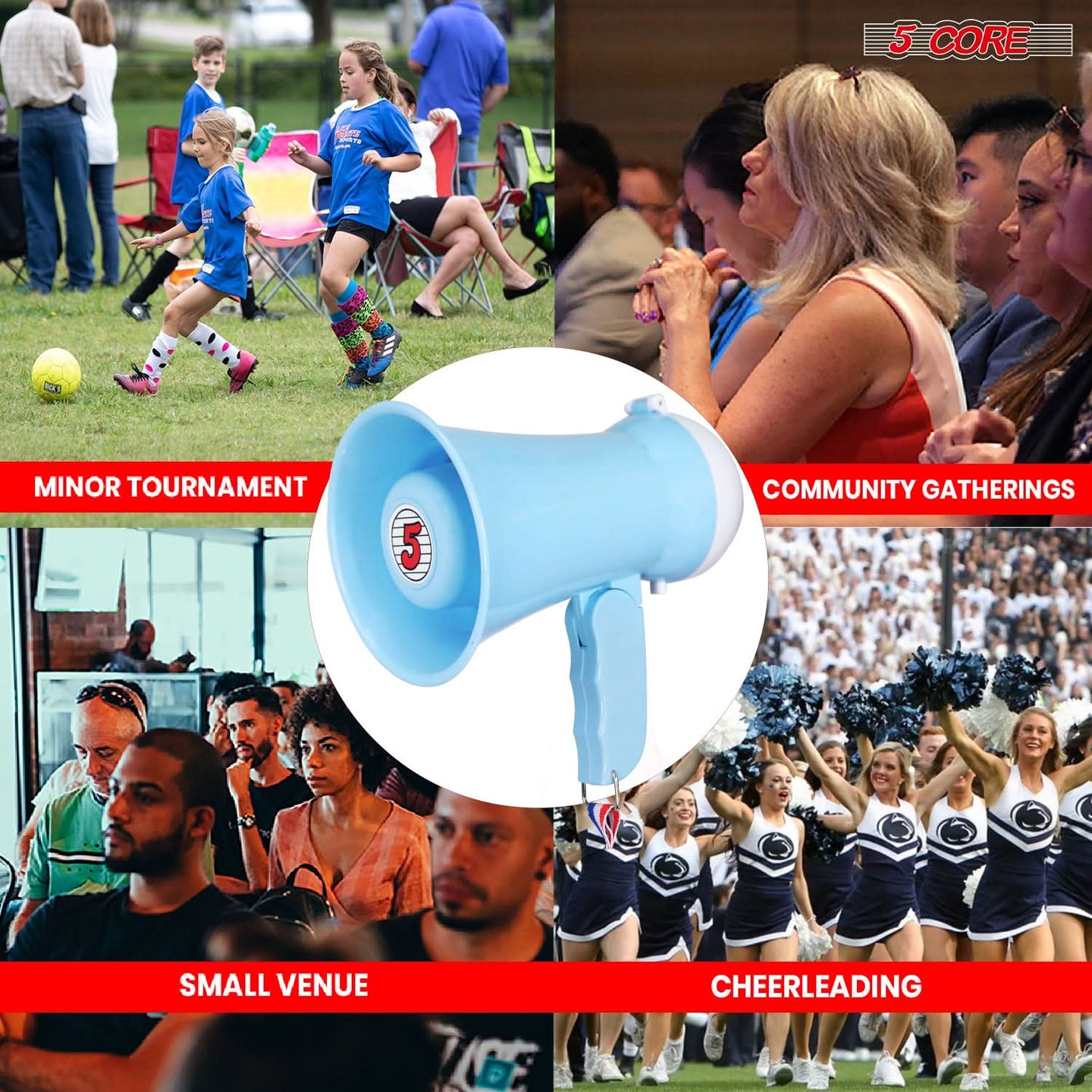 Get your message heard up to 400 yards with the 5 Core mini bullhorn megaphone loudspeaker. This durable all-weather loud Mini Kids Megaphone Bull Horn has features such as Volume Control, Alarm, and ergonomic design, making it one of the best megaphones in its category. Use the small kids megaphone cheer loudspeaker for organizing rallies, parties, speeches, cheerleading, and crowd control. It's also a thoughtful gift for football or cheerleading coaches. The portable bullhorn loud speaker is lightweight, makes it easy to carry. So, no more yelling! |