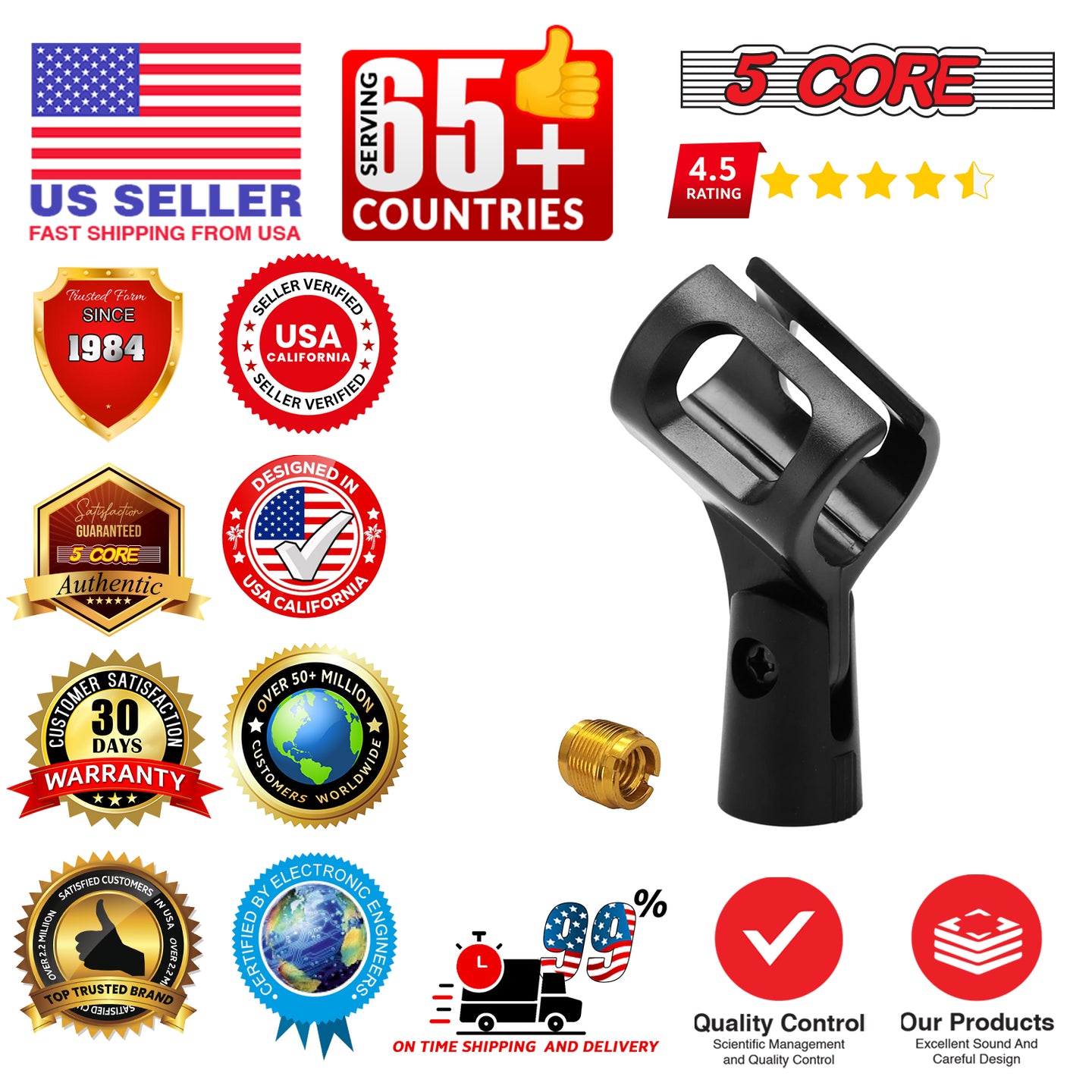 Experience unparalleled versatility with our universal mic clip. Designed to fit a wide range of dynamic microphones, these mic holders ensure seamless integration with all standard microfono stands, drum mic mount, and boom arms. Made from high-quality ABS and metal, these clips ensure durability and long lasting use. Its secure design holds your microphone firmly without damage, while the 180-degree adjustable angle offers optimal positioning. Installation is a breeze with the standard 5/8 to 3/8 inch precise threaded nut, ensuring rock-solid stability. Compact and portable, these mic clips are perfect for on-the-go professionals. The anti-slip interior texture provides extra security, ensuring your microphone stays in place during performance.