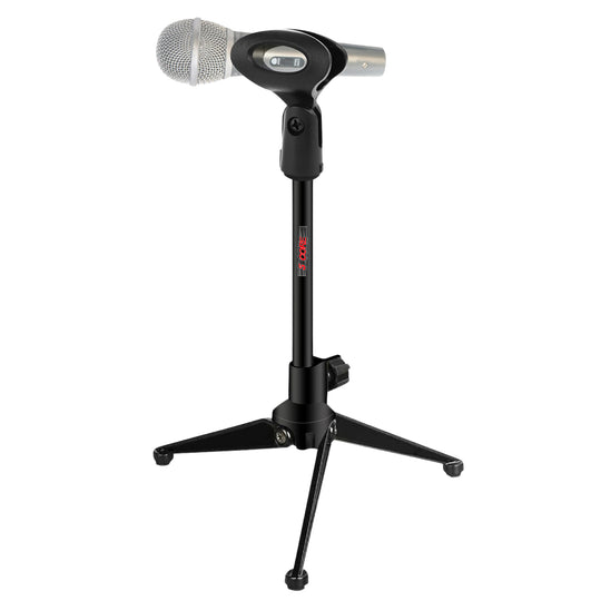 Small tabletop mic stand: Compact and adaptable, ideal for podcasts, vlogging, or recording in confined spaces, providing flexibility in mic placement on desks or tabletops.