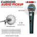 The dynamic mike uses a cardioid pickup pattern that effectively focuses on your voice while reducing surrounding noise. Ideal for loud environments, stage use, or live recordings. |