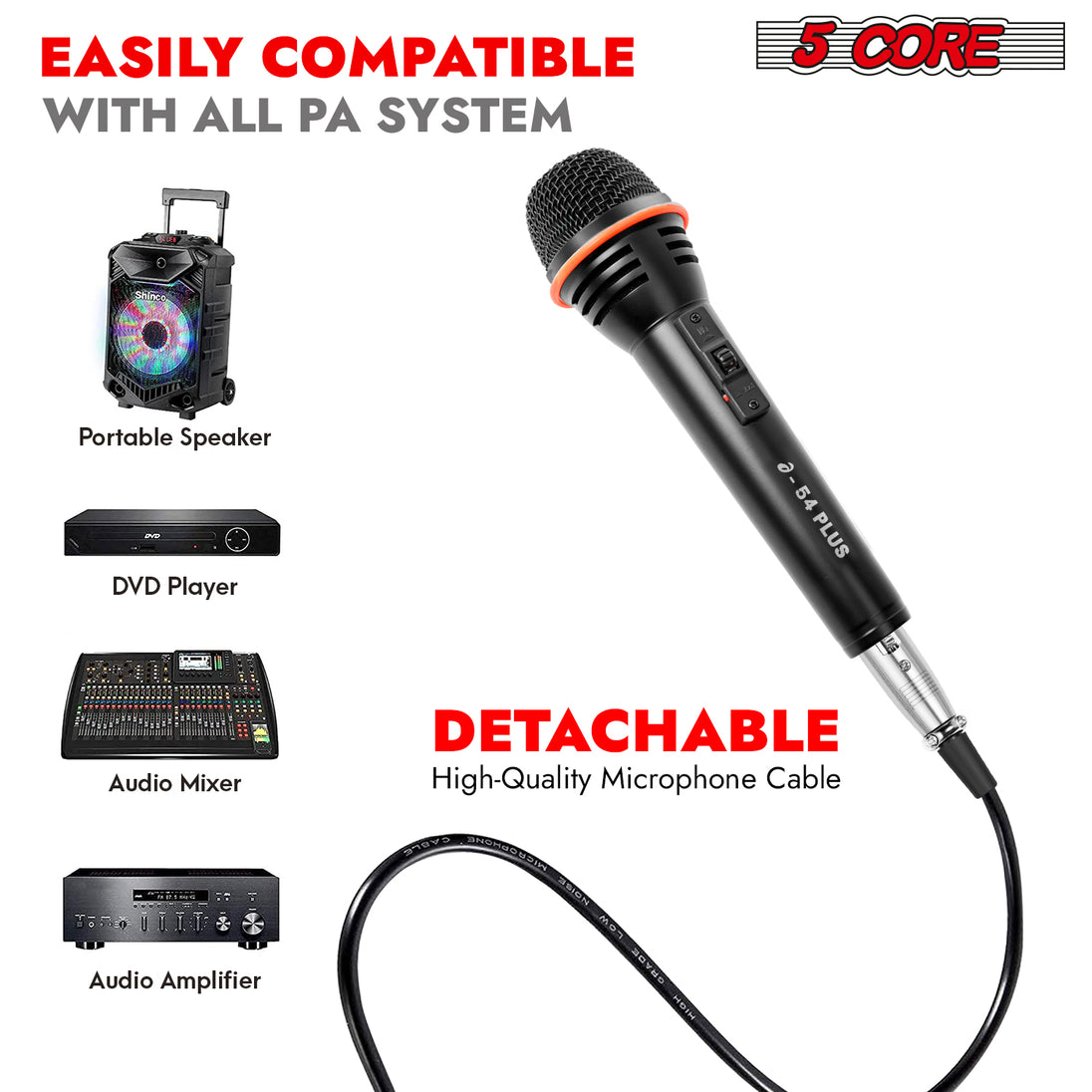 5 Core microfonos professional comes with a sufficiently long cable, allowing for freedom of movement while remaining tangle-free. |