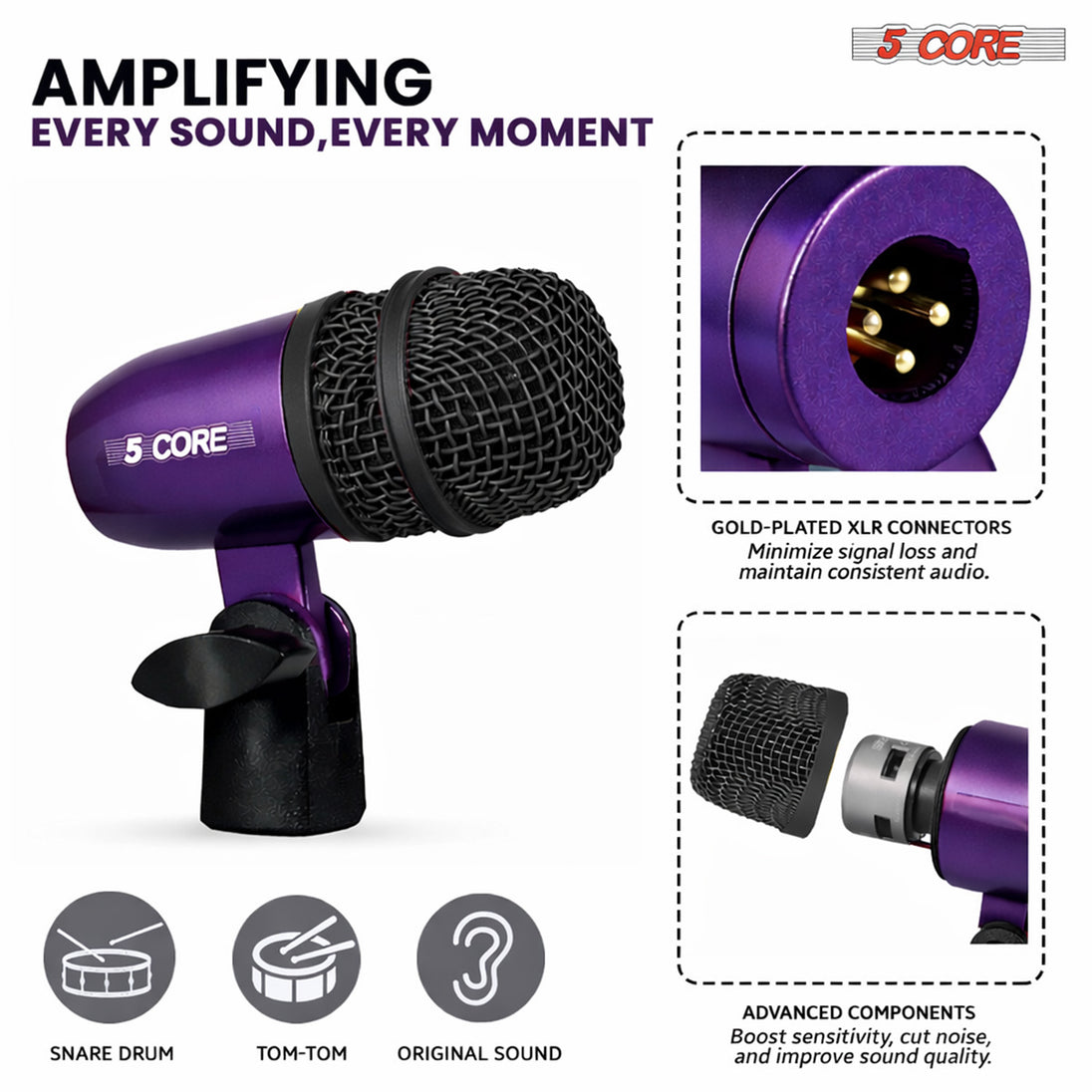 Works seamlessly with mixers, audio interfaces, and PA systems using standard XLR connections—no special preamps or additional power requirements for reliable drum recording and stage use. |