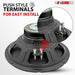 Standard 12 inch size, 129 MM depth and terminal compatibility make this speaker quick to mount in most enclosures. |