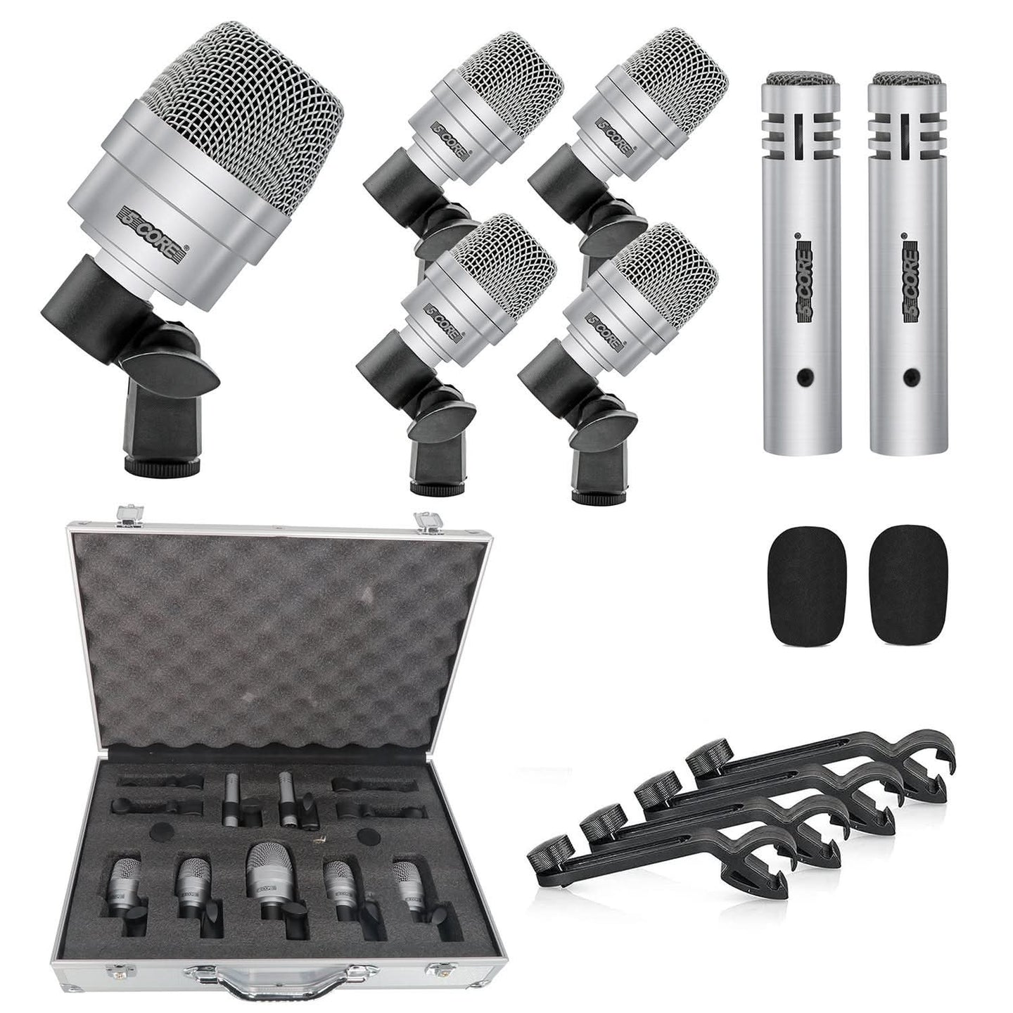 Elevate your performance with this 7-piece drum microphone kit, perfect for live shows and studio recordings. Designed for optimal sound capture, the bass drum mic delivers powerful low-end frequencies (20Hz-15kHz), while the snare and tom mics provide accurate tone reproduction (50Hz-12kHz). The overhead condenser mics capture crisp cymbals and ambient details (50Hz-18kHz) with high SPL handling and phantom power compatibility. With uni-directional polar patterns and durable construction, this drum mic set ensures focused sound and minimal bleed. Ideal for any drum set microphone kit, this versatile drum mics kit suits professionals and hobbyists across all musical genres.