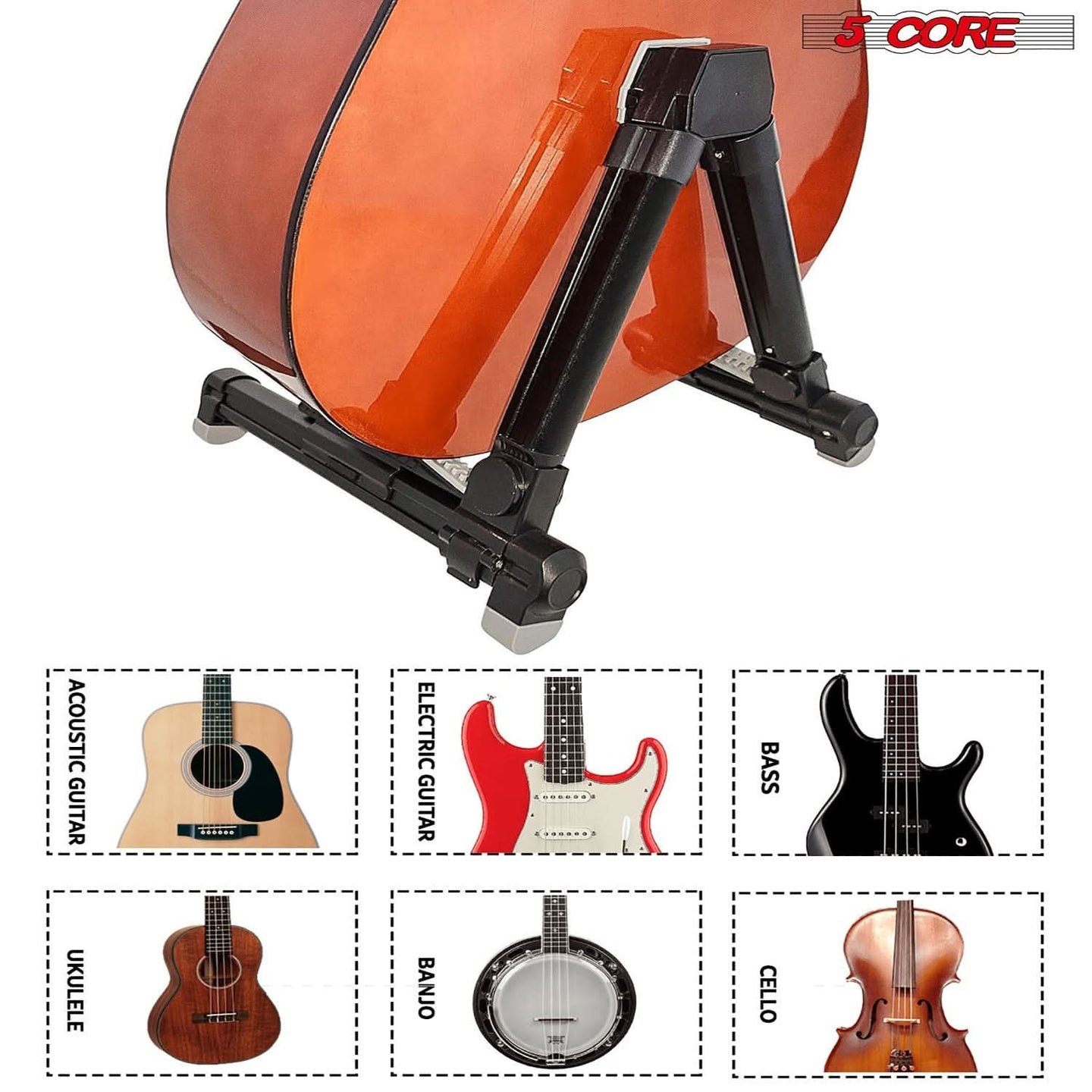 【Fits All Guitars】 Accommodates Acoustic, Electric, Ukulele, and Bass guitars with adjustable width.