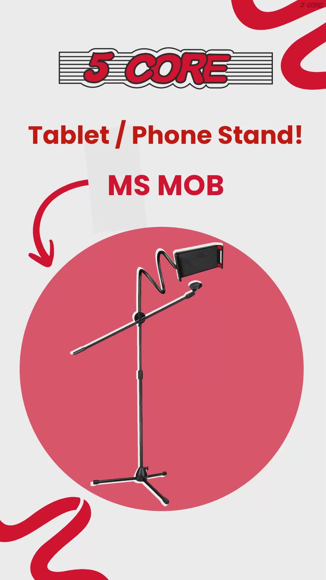5 Core mic stand with phone and tablet holder, designed for maximum convenience and versatility. The clamp-style phone holder support most smartphones. The tablet holder is adjustable and can accommodate devices up to 6.9 inches. With a height range of 44 to 67 inches, this tripod mic stand floor suits any setup. Made from metal with anti-corrosion paint, it ensures reliable use for long time. Anti-slip rubber caps offer superior stability on any surface, protecting your floors. Enjoy flexible adjustments with a 360-degree gooseneck rotation, extendable boom arm, and adjustable mic holder. The tripod microphone stand has a foldable design and comes with a premium bag, making it easy to portable and store. Whether you're a musician, content creator, or speaker, this boom mic stand provides functionality and practicality for all your needs.