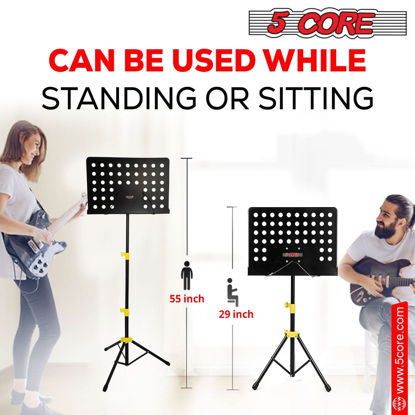 Improve your music experience with the 5 Core music stand. Crafted from durable metal, this music stand for sheet music offers reliable stability with an adjustable height of 29 to 55 inches, ensuring comfort whether you are seated or standing. |
