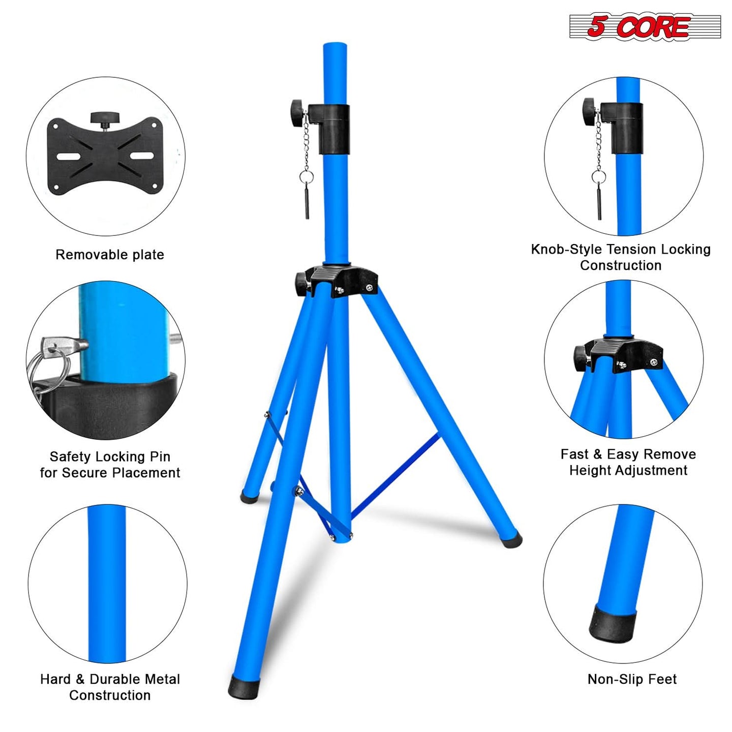 【Height Adjustable Speaker Stand】– Extends from 26 to 48 inches, secured with a sturdy metal safety locking pin.