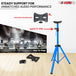 Achieve perfect sound setups with our low profile tripod PA speaker stand. Easy height adjustment from 24 to 48 inches, or 2 feet to 4 feet, ensures flexibility for various setups. The heavy-duty steel construction, reinforced joints, and anti-corrosion paint ensure durability, supporting large speakers, studio monitors, and woofers up to 132 lbs. The rear speaker stand features anti-slip design with tripod legs and non-slip rubber caps provides the subwoofer stand superior stability, while the knob-style tension locking system and sturdy metal pin secure a safe raise and lower. Improve your performance with this reliable, professional-grade tripod studio monitor stand. |
