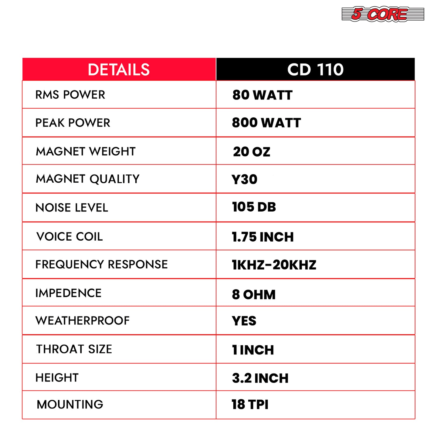 【Universal 18TPI & 8Ohm Compatibility】Designed with standard 18 TPI screw-on mounting, and universal 8 Ohm impedance rating, this driver horn fits most throats, making installation quick and hassle-free for car audio upgrades or replacements.