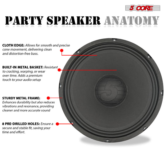 5 Core 12 Inch Speaker Pair 200W PA DJ Loudspeaker 8 Ohm Replacement Driver w 30 Oz Magnet